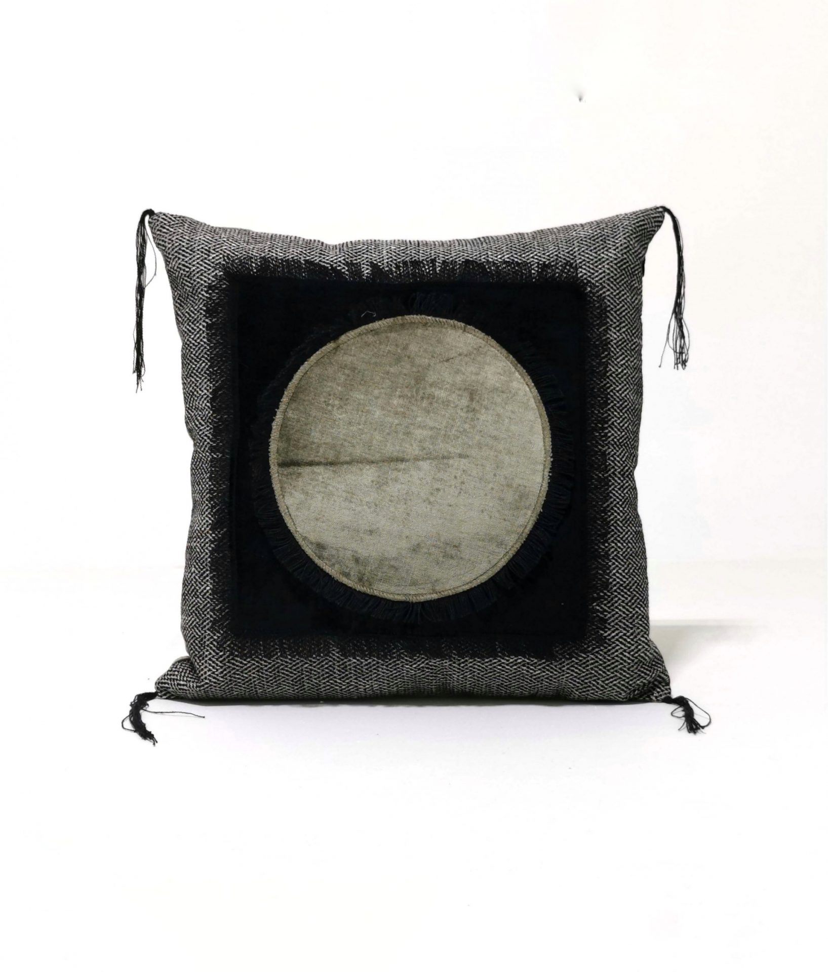 Colors and materials: Natural Medina jute linen, Tsar bark velvet and black.