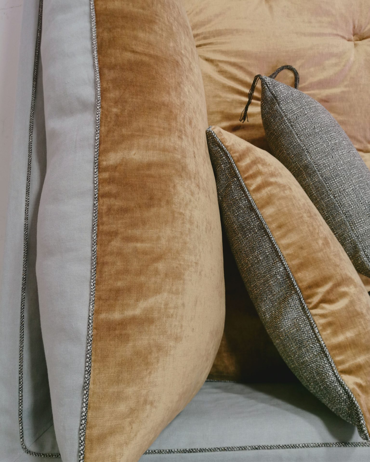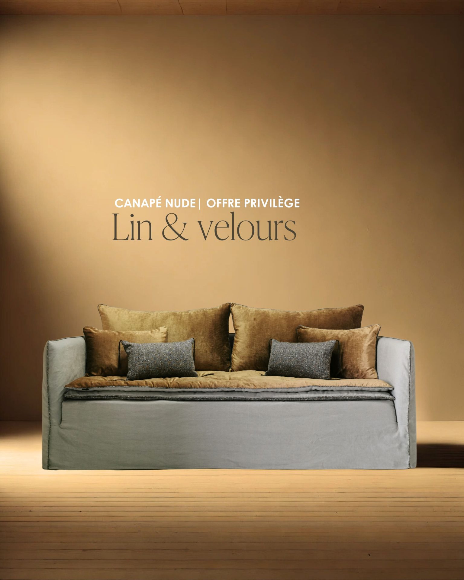 Ce canapé Nude est habillé de notre lin lavé Capri dans une teinte aujourd’hui devenue collector : le vert de gris.