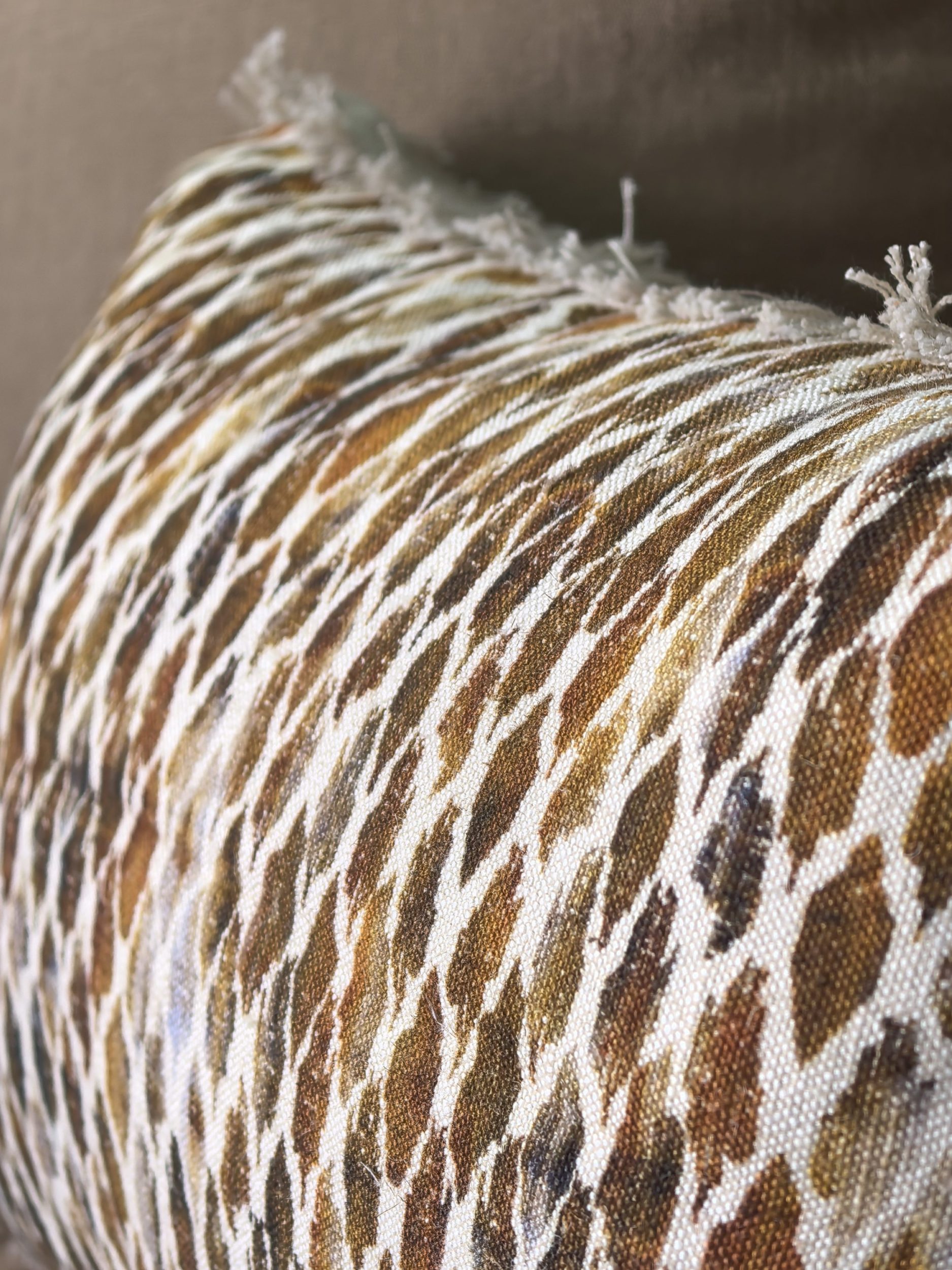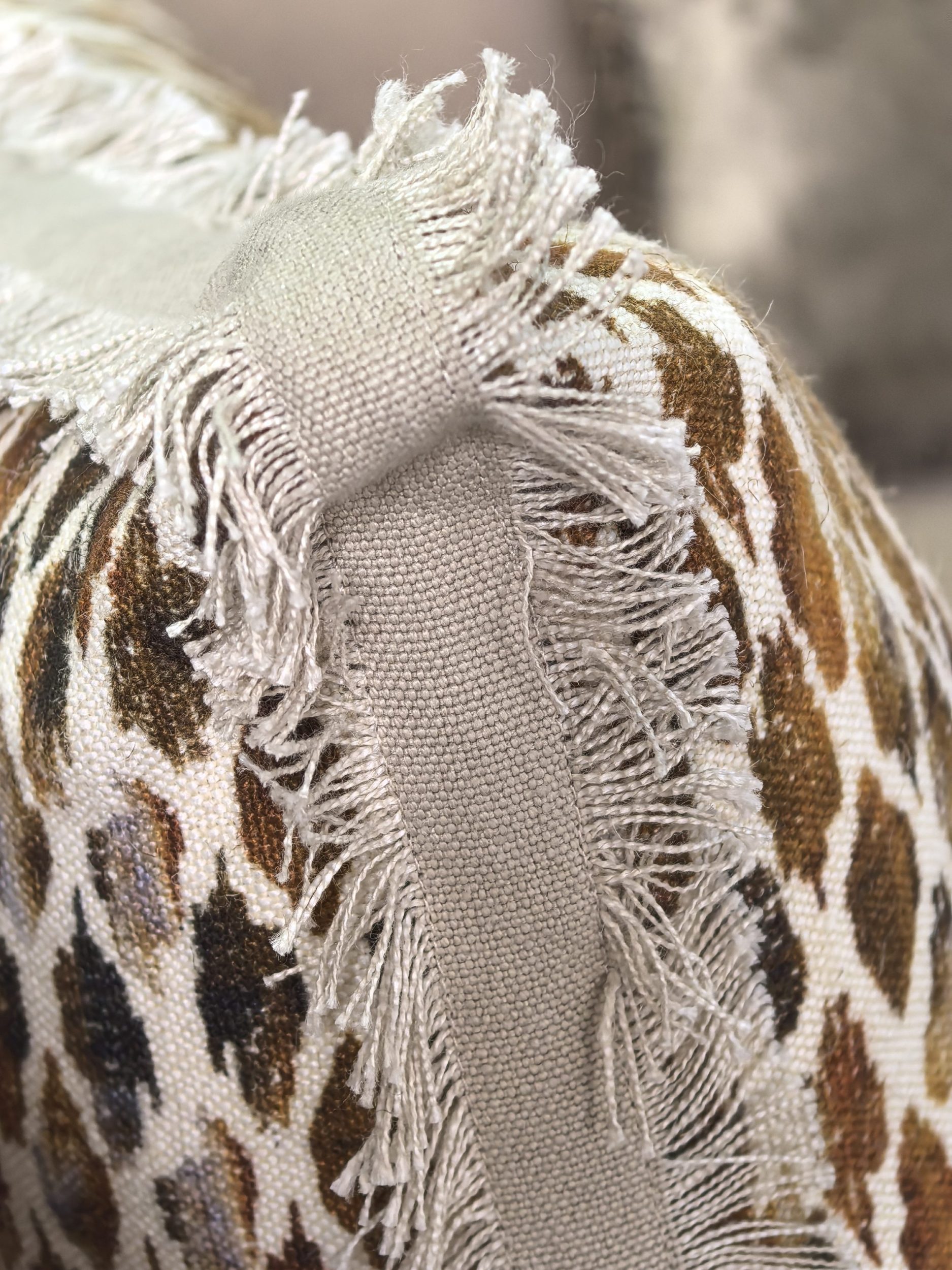 2 coussins 30 x 50 cm lin imprimé Retour d'Afrique 2 finition frangée mains Cheyenne lin Capri