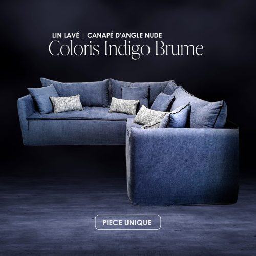 Accueil / Offres Privilèges / Canapé d’angle Nude en lin Indigo Brume