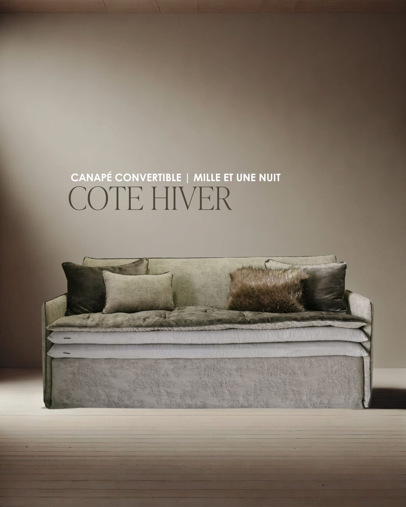 Canapé entièrement déhoussable / Conditions de nettoyage : nettoyage à sec pour le velours Tsar et les lins Touareg et Berbère, nettoyage à 30° pour le lin Capri