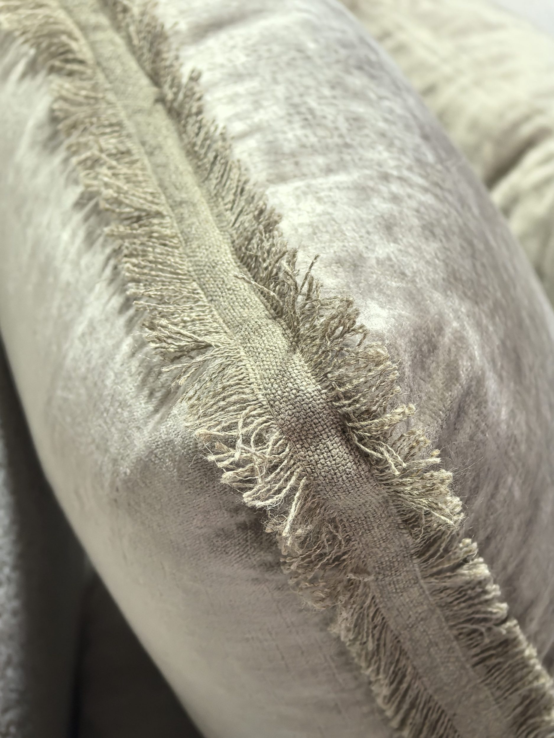 1 coussin 30 x 50 cm velours Tsar sable finition frangée main Apache en lin naturel