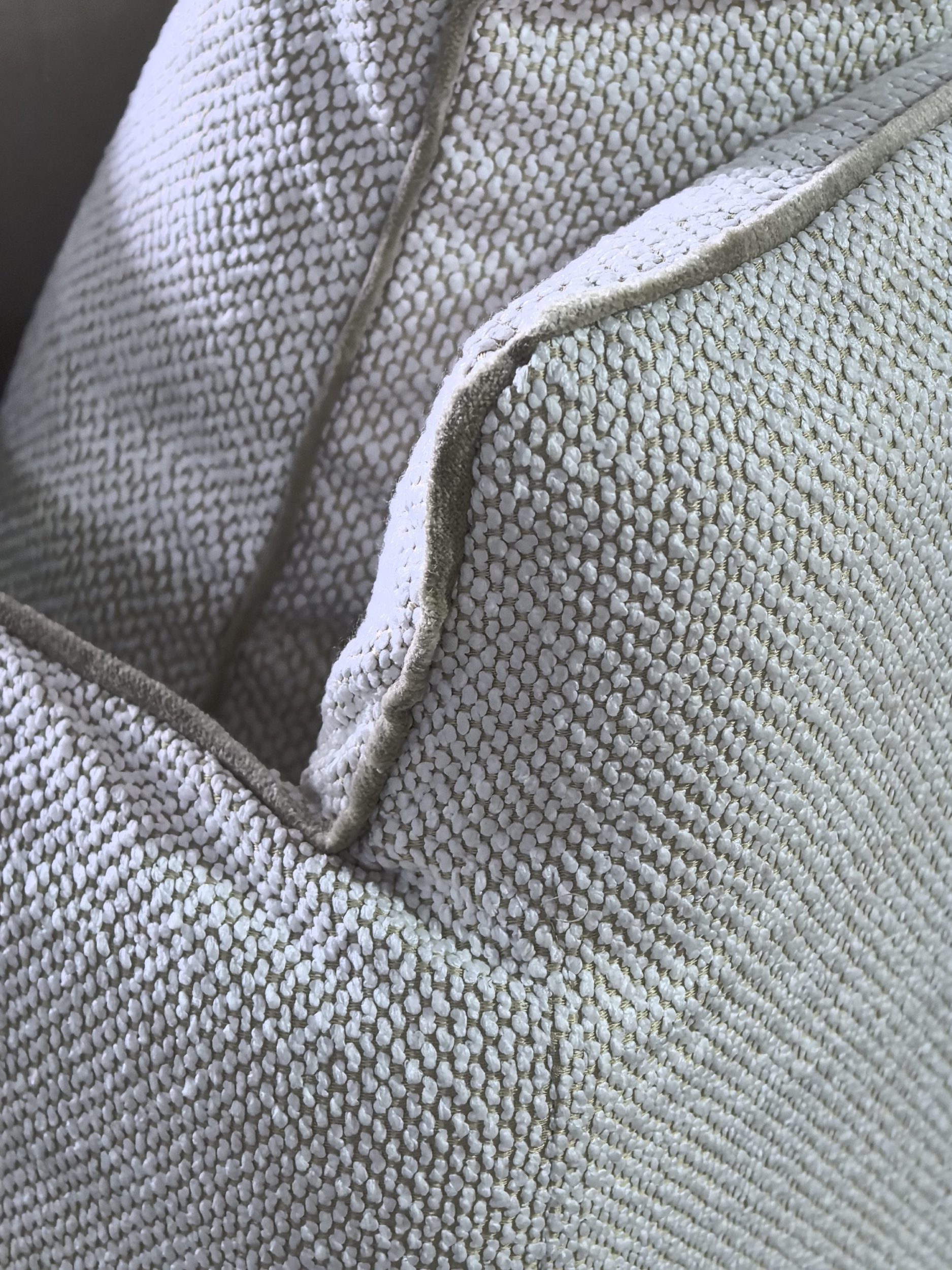 Notre canapé Mila est habillé par notre tissu Zepa, notre nouveau tissu chiné à l’esprit bouclette, avant son entrée en collection.