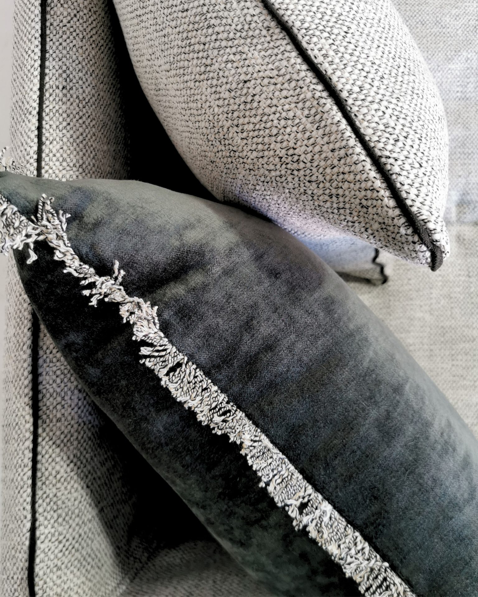 3 coussins de dossier  50 x 50 cm  velours Tsar carbone finition frangée Cheyenne Alaska