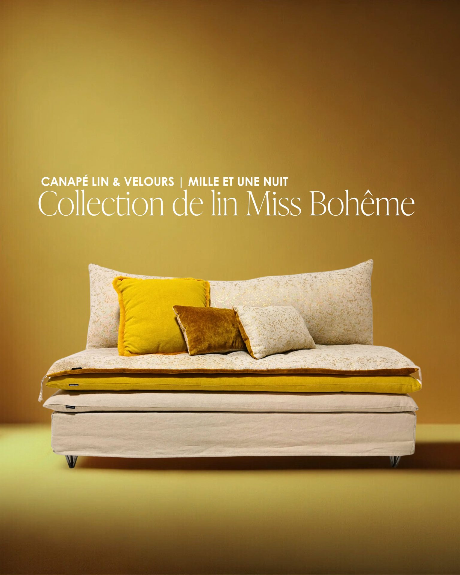 Accueil / Offres Privilèges / Canapé Mille Et Une Nuit 160 cm lin lavé Capri et lin Miss bohème