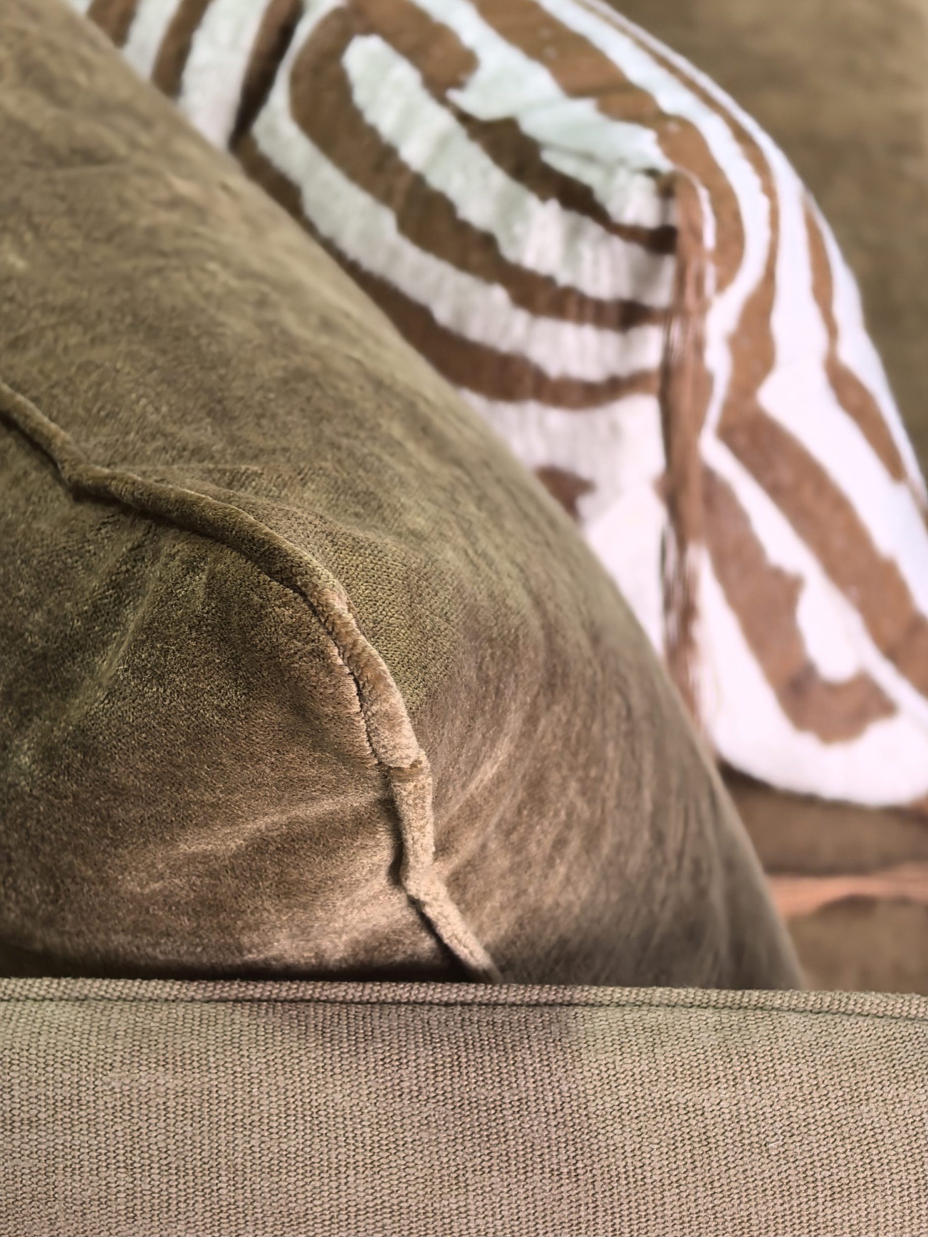 Sofa Cover recto Origine havane beach ( face été ) verso velours Tsar havane beach 233 ( face hiver ) finition liseret velours Tsar havane beach 233