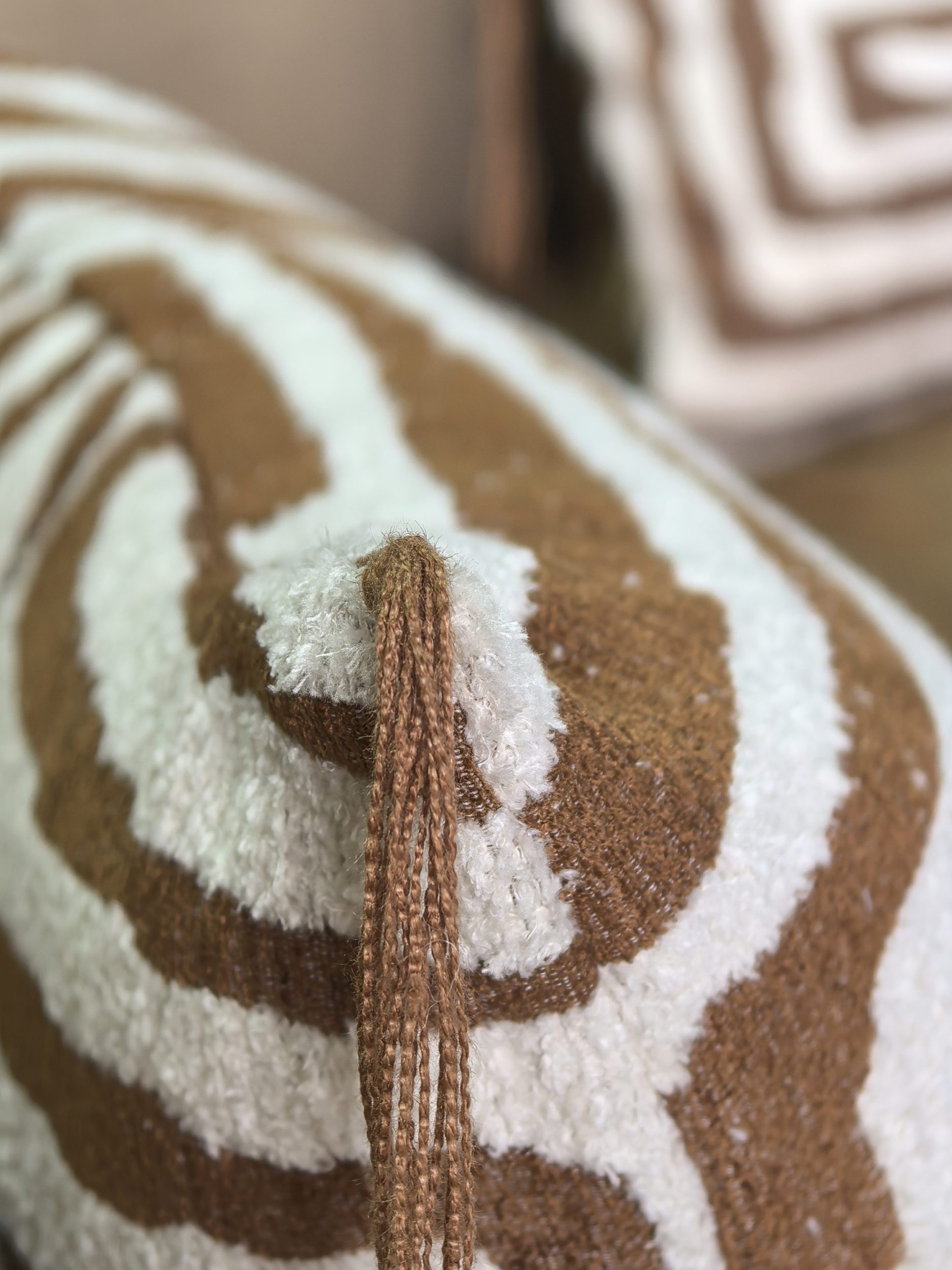 2 coussins 30 x 50 cm Tobacco shore finition fils nœuds lin sienne