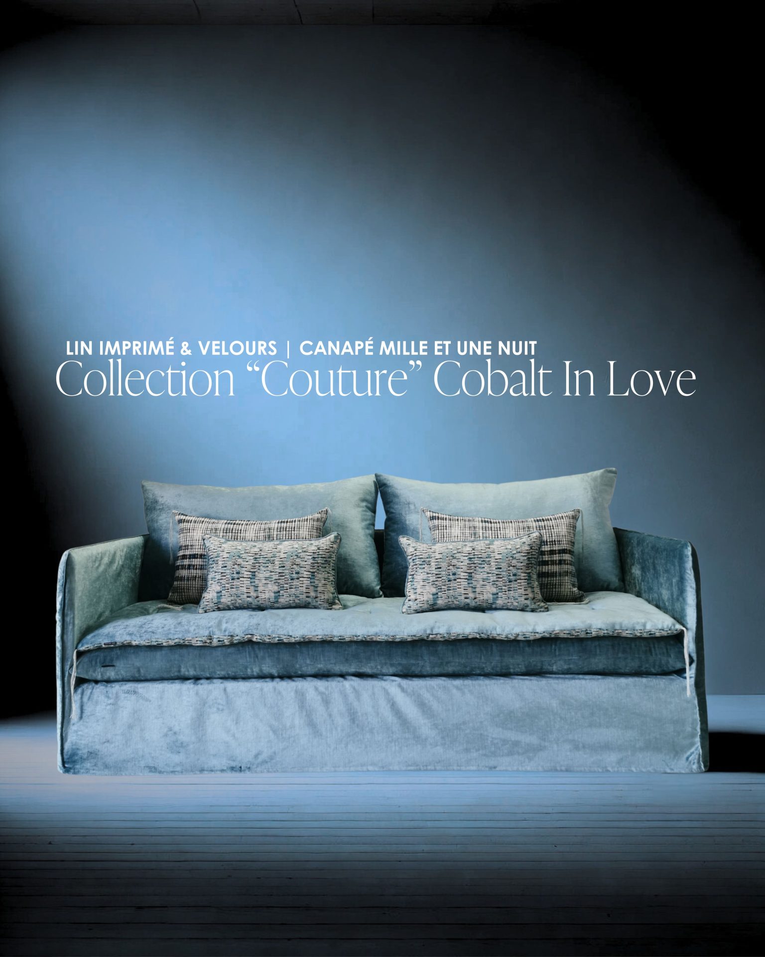 Une opportunité rare de s’offrir un canapé pensé comme un écrin de lin Cobalt et de lignes douces.