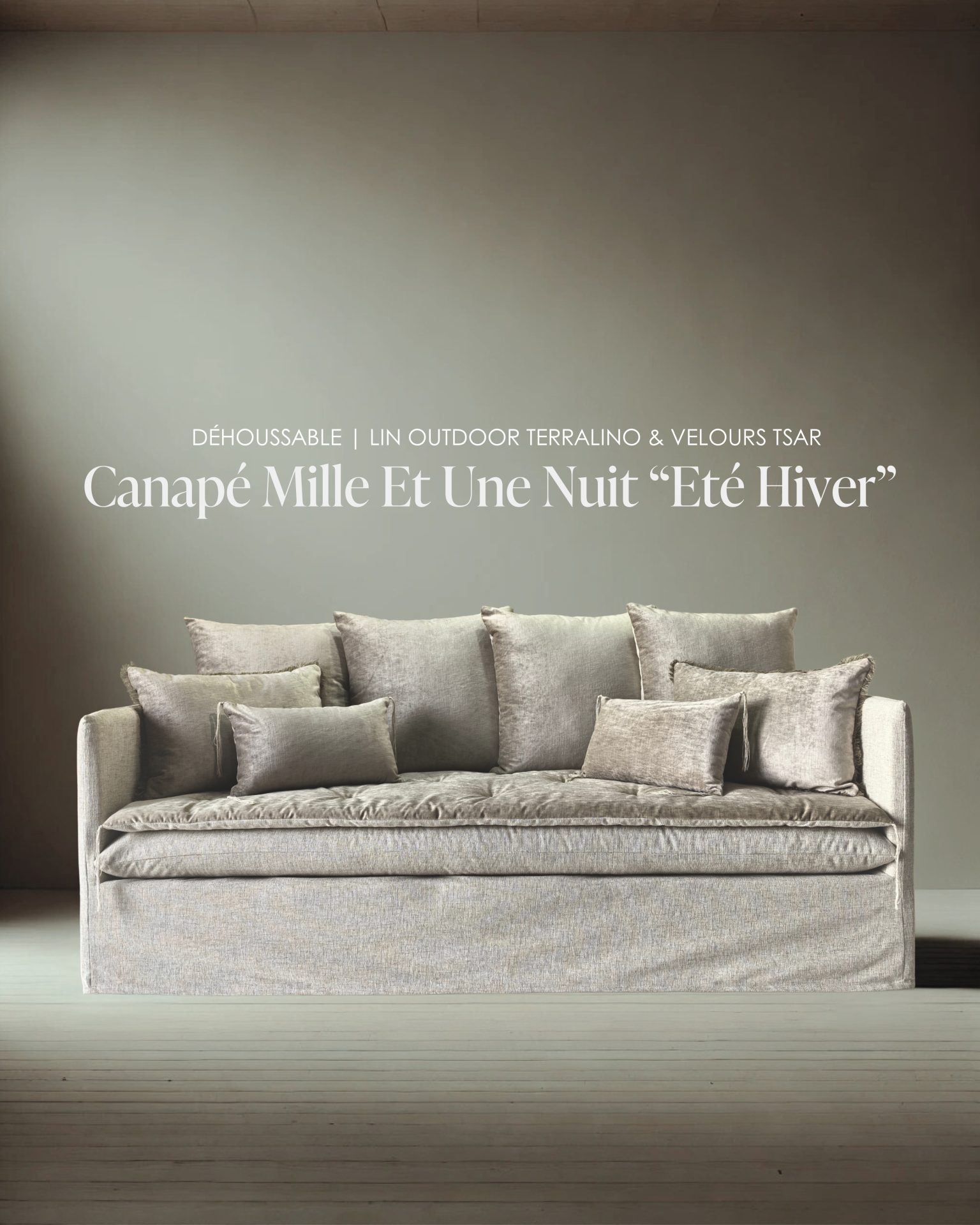 Ce canapé est l’un des premiers à être habillé de notre nouveau tissu Terralino, un lin d’avant-garde pensé pour les intérieurs et les extérieurs.