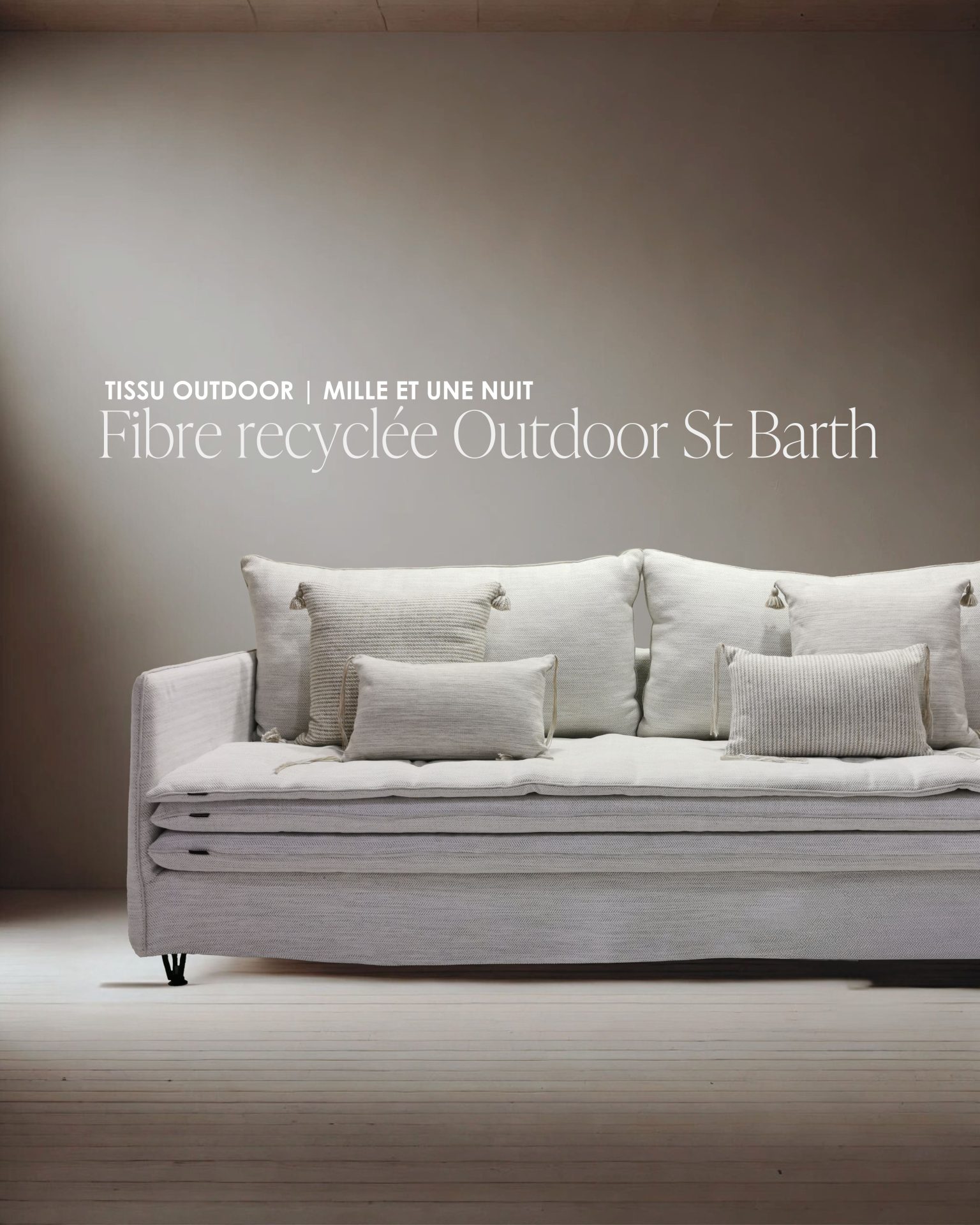 Collection Outdoor St Barth : tissus déperlants, imputrescibles et résistants à la lumière en fibre recyclée.