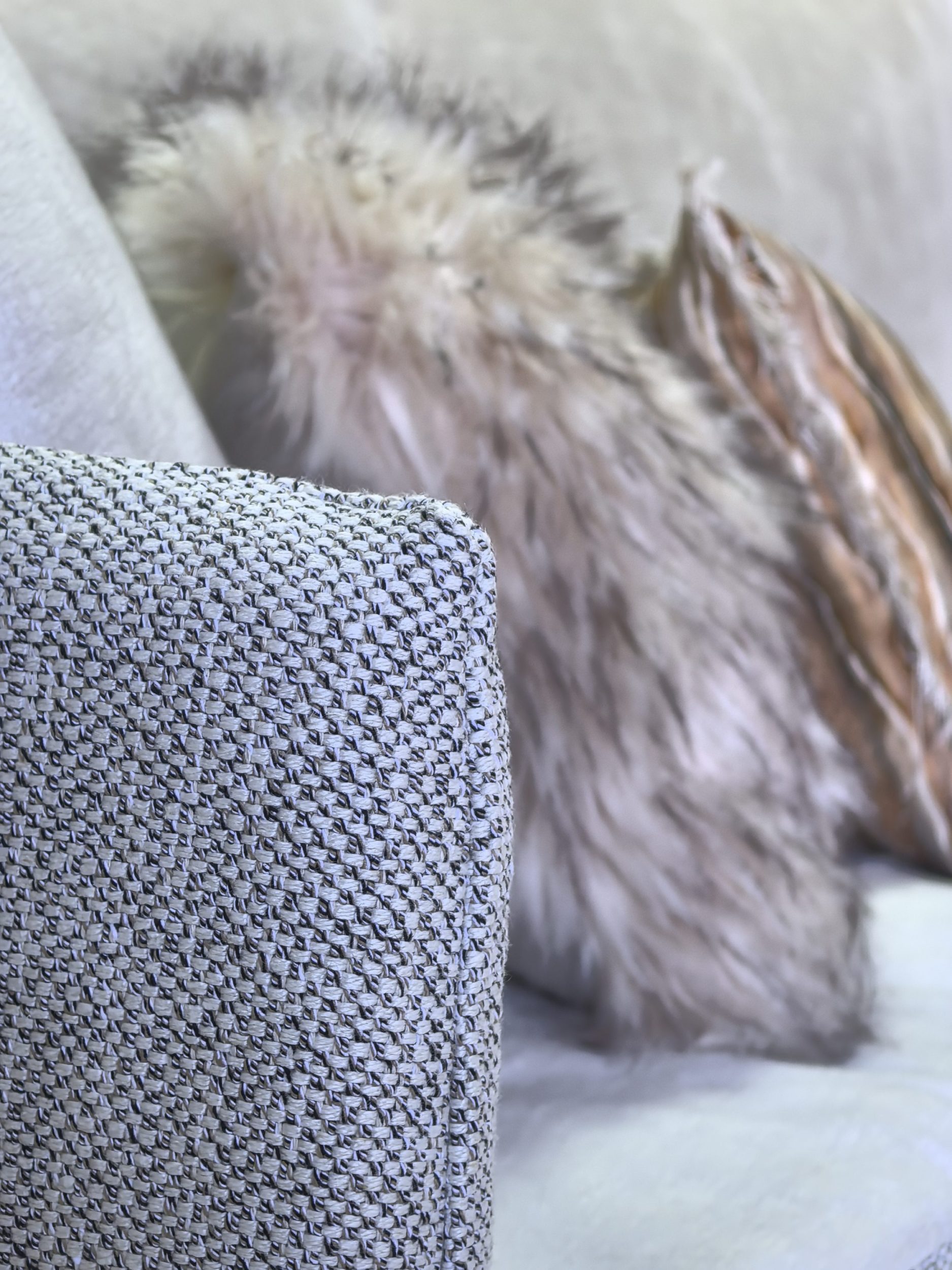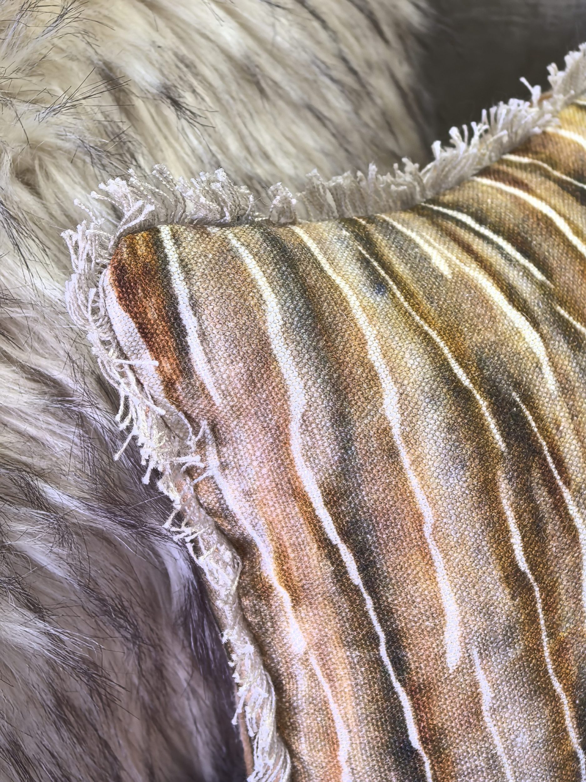Coussin 30 x 60 cm fausse fourrure Volpe nature finition bord à bord
