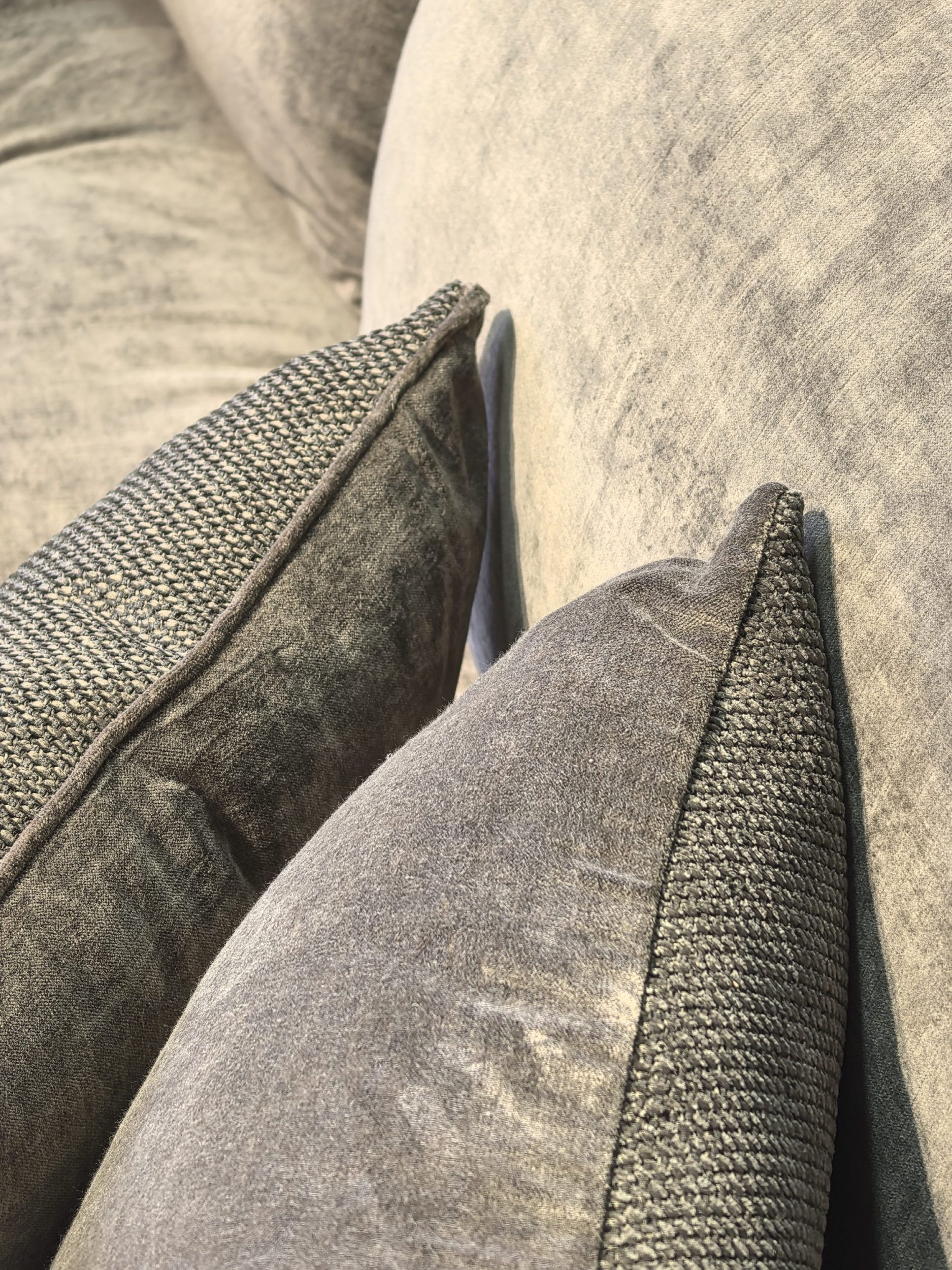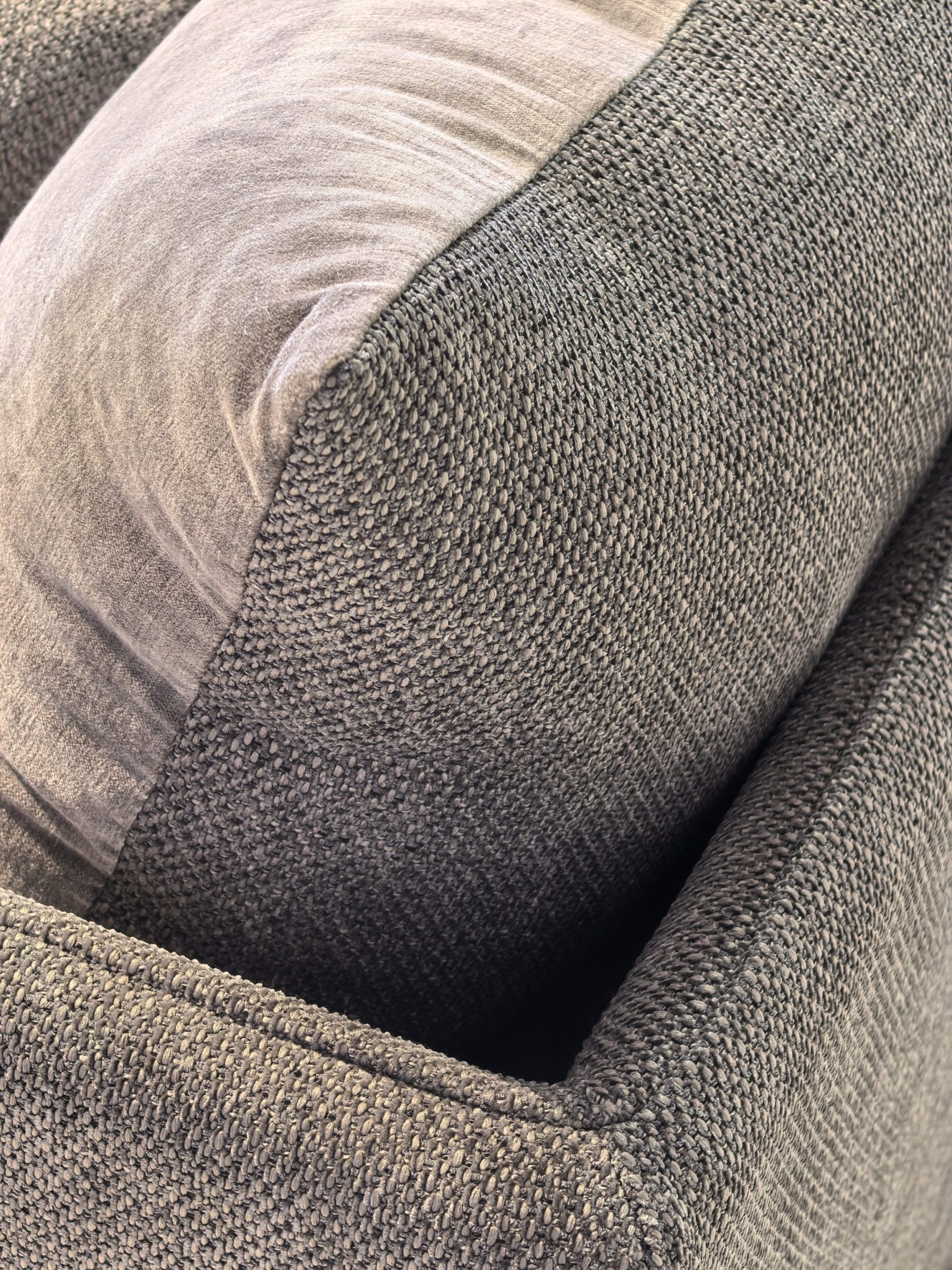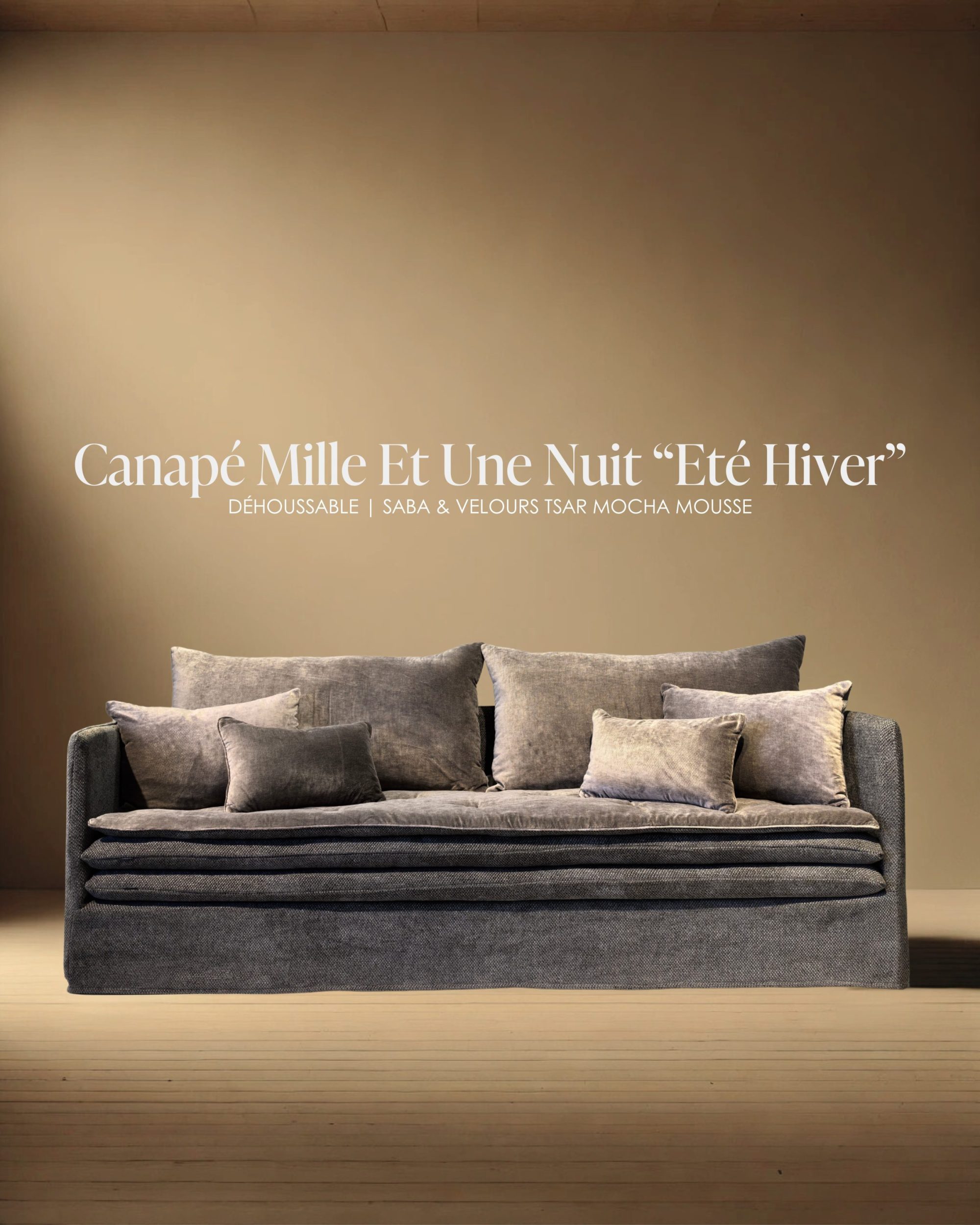 Avant d’entrer en collection, ce canapé a été conçu comme la première pièce d’exploration textile, pensée pour sublimer notre nouveau tissu Saba dans un accord chromatique raffiné avec le velours Tsar dans sa nouvelle couleur “Mocha Mousse“.