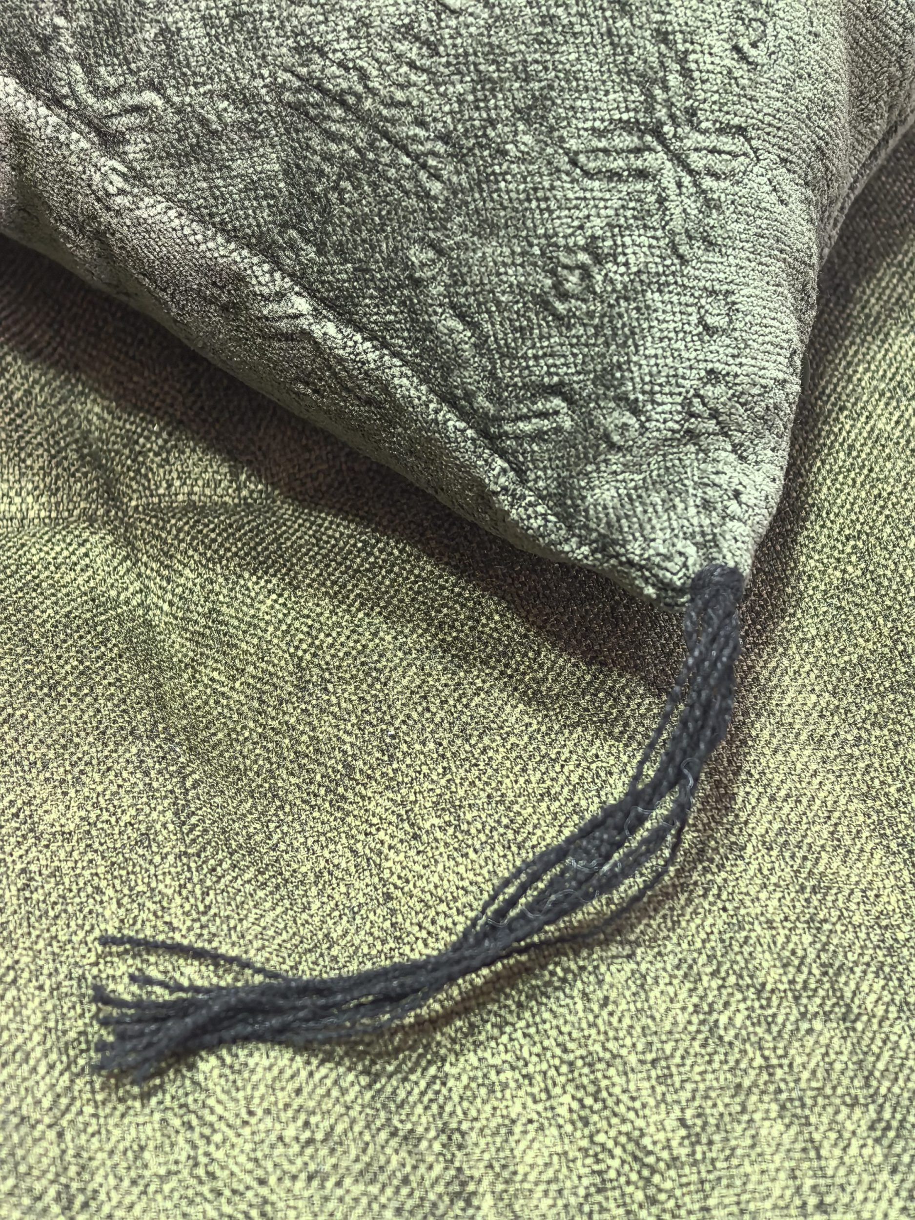 2 coussins 30 x 50 cm Kilim chenille soft washed kaki finition fils nœuds lin noir