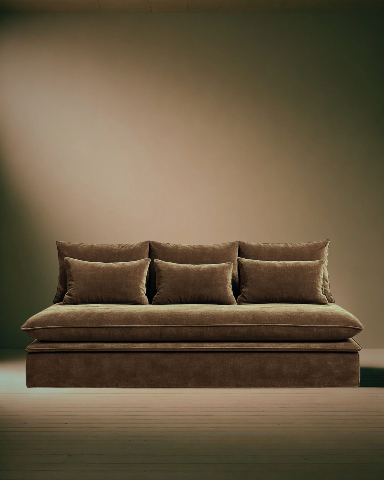 Le canapé Mille Et Une Nuit 7 célèbre un luxe discret et sensoriel, sublimé par la lumière profonde du velours Tsar et un confort d’assise inimitable.