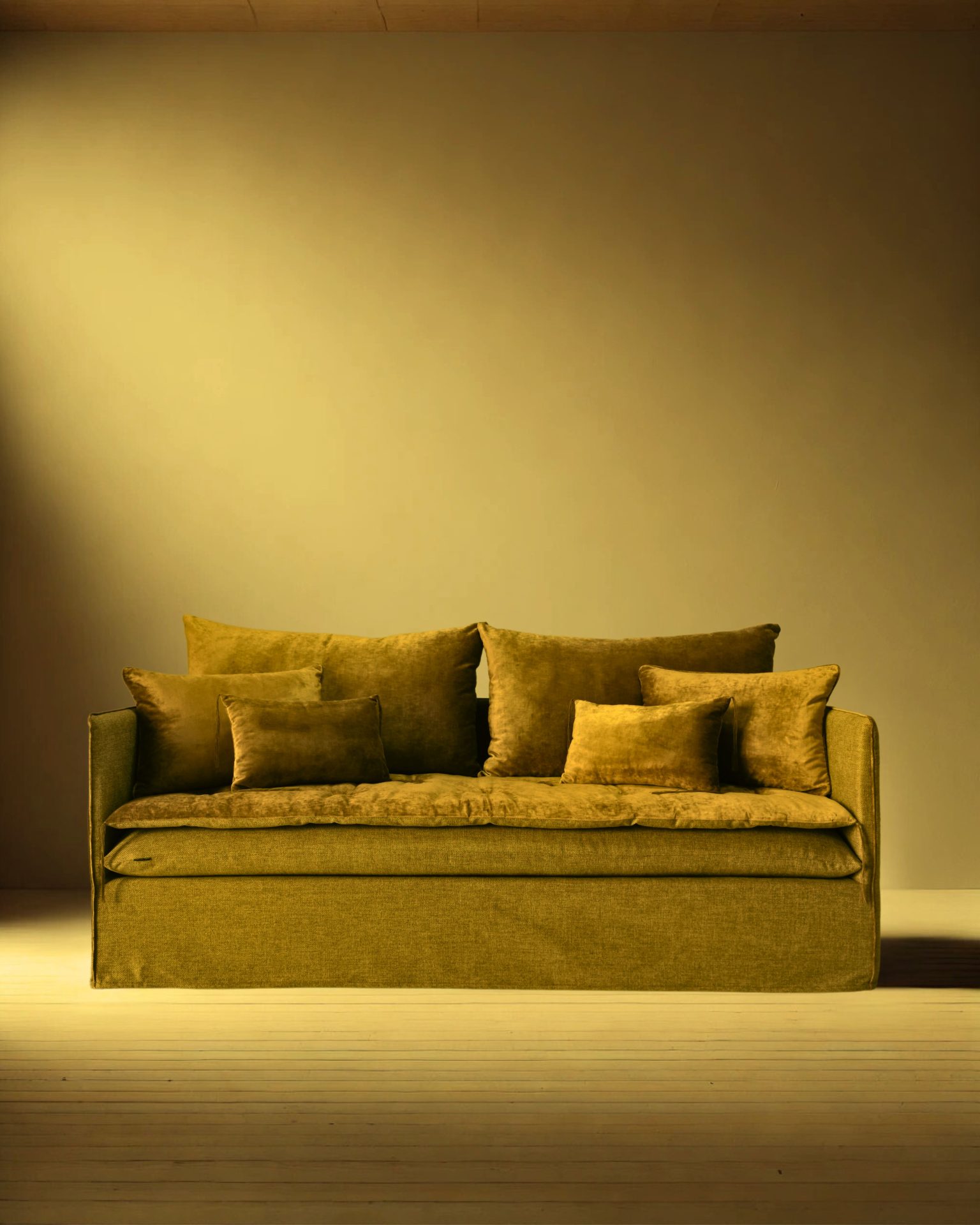 Pensé comme une pièce de vie évolutive, le canapé Mille et Une Nuit ÉTÉ HIVER s’adapte aux saisons.
