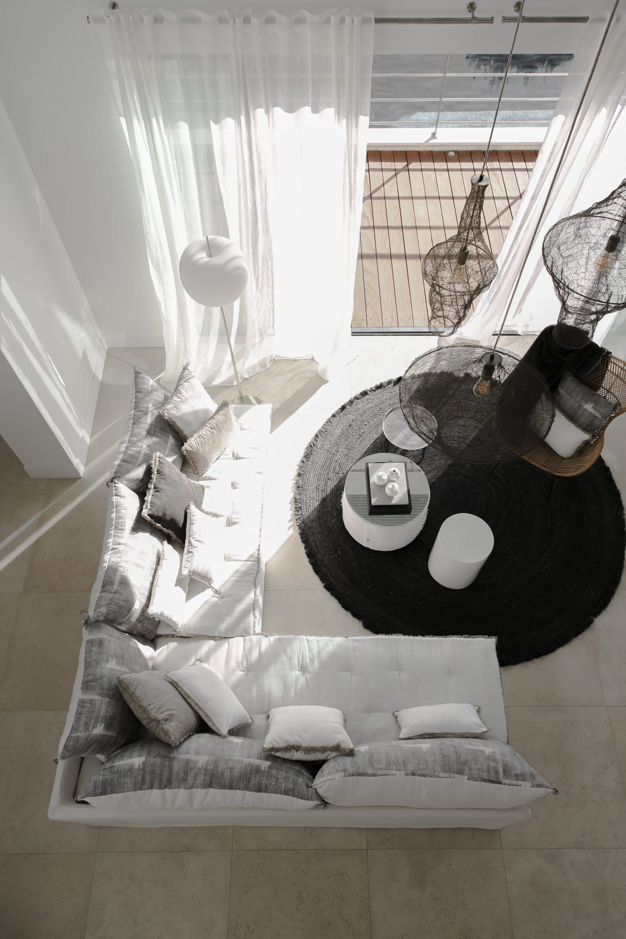 Les camaïeux de charbon, gris carbone et écorce s’accordent naturellement avec les velours Tsar blanc craie, les lins stone-washed Capri ou les chenille soft-washed Vérone.