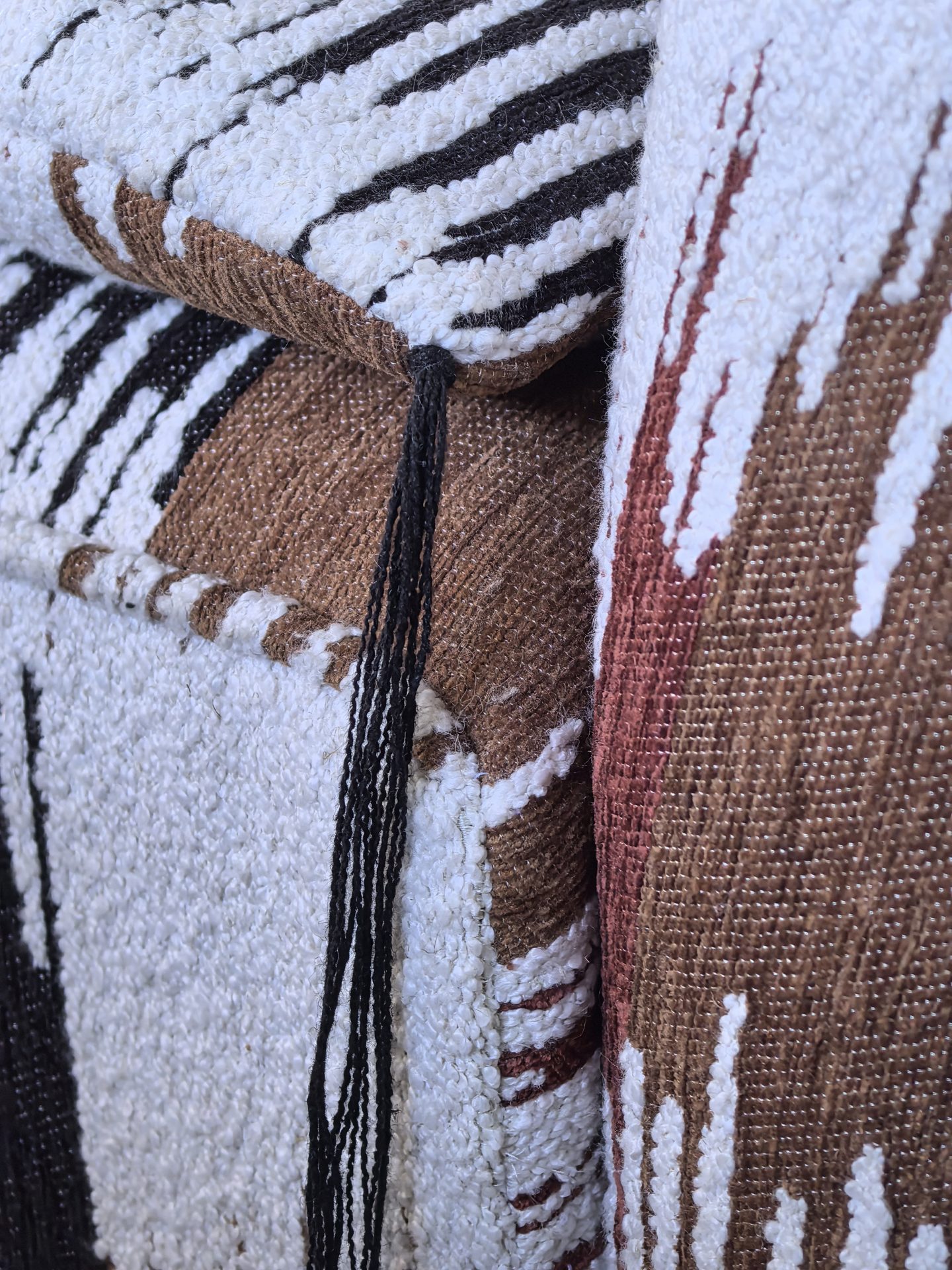Le canapé Sirocco capture un instant de notre cheminement artistique en mettant en scène une réinterprétation contemporaine du savoir-faire ancestral de l’Ikat.