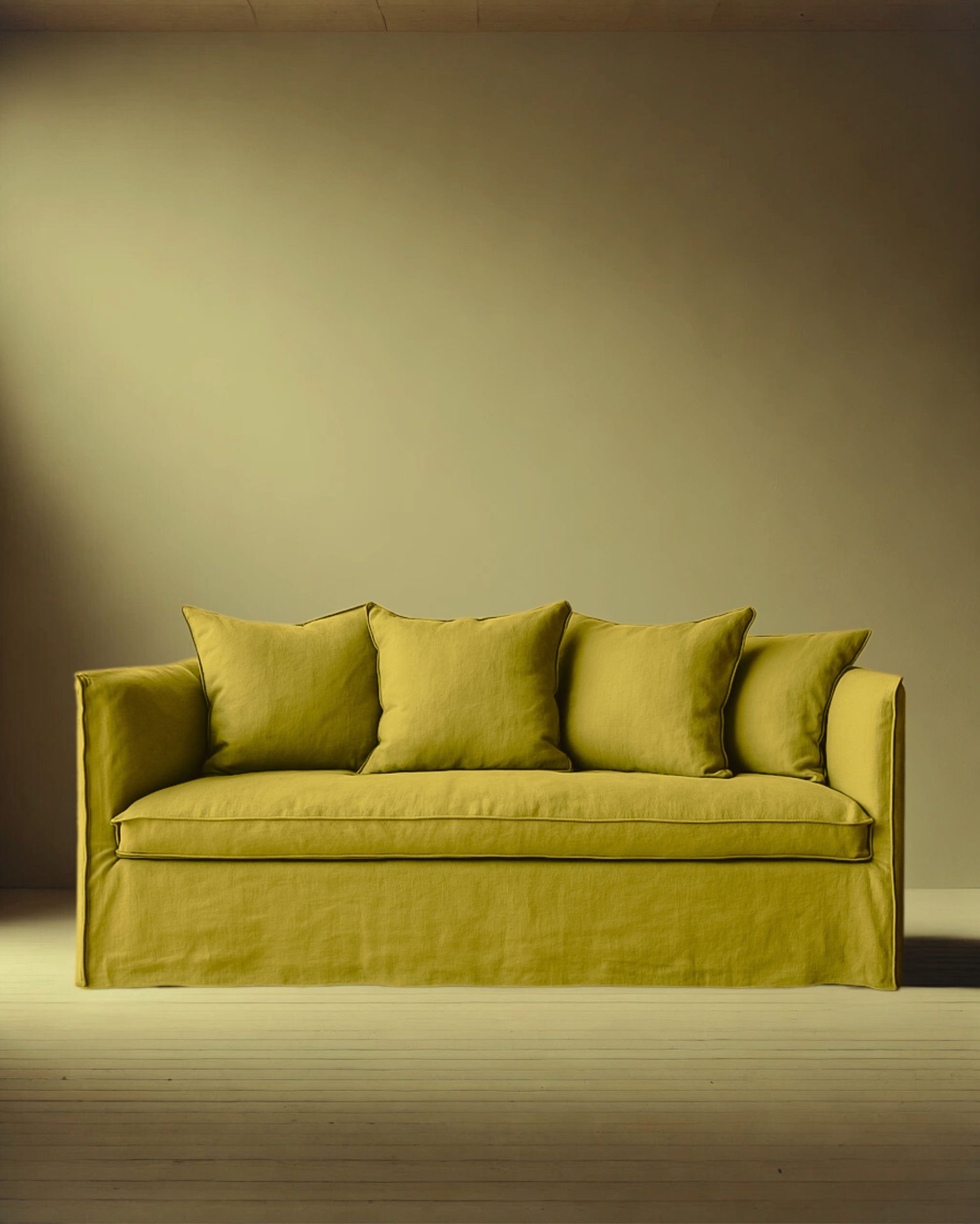 Ce canapé ne naît que s'il est désiré, il est fabriqué à la demande spécialement pour vous, sans stock. Ainsi chaque canapé est réalisé exclusivement sur commande, pour limiter l’impact environnemental du stockage / Délai indicatif de livraison : 4 semaines — le temps nécessaire à une création responsable et fidèle à l’exigence artisanale de la Maison.