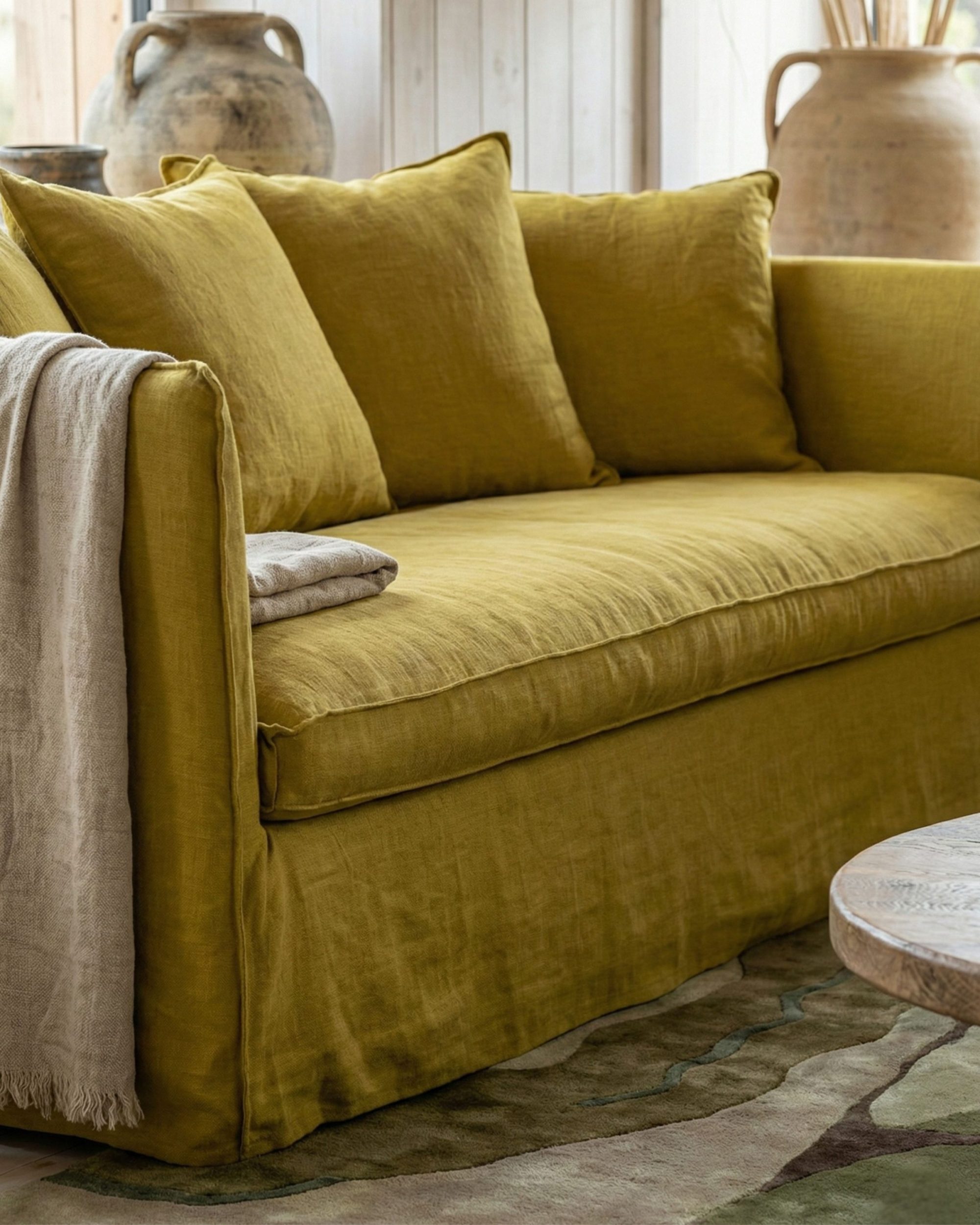 • Canapé Noé 2 olive délavé