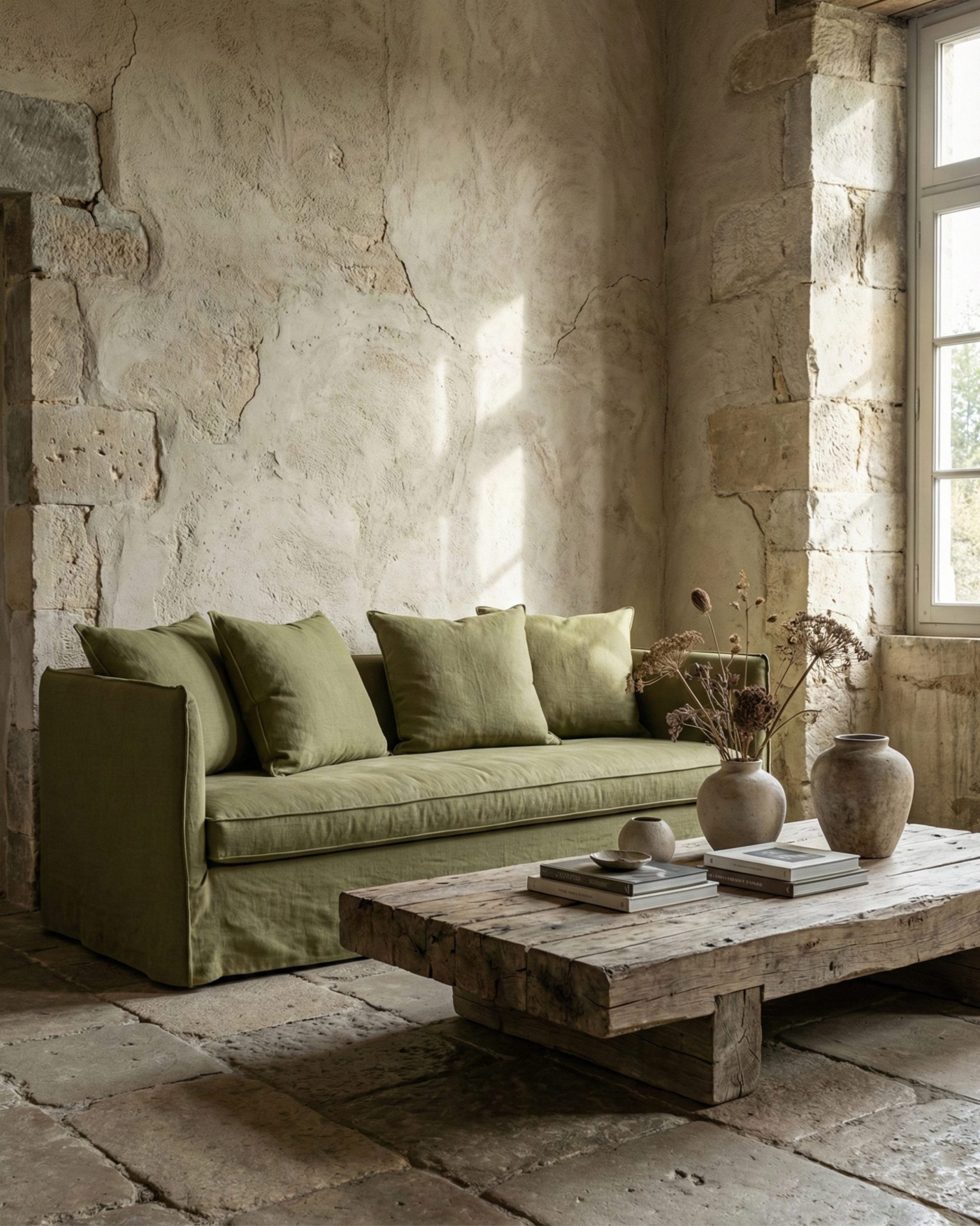 Accueil / Les Purs / Canapé Noé 2 olive délavé