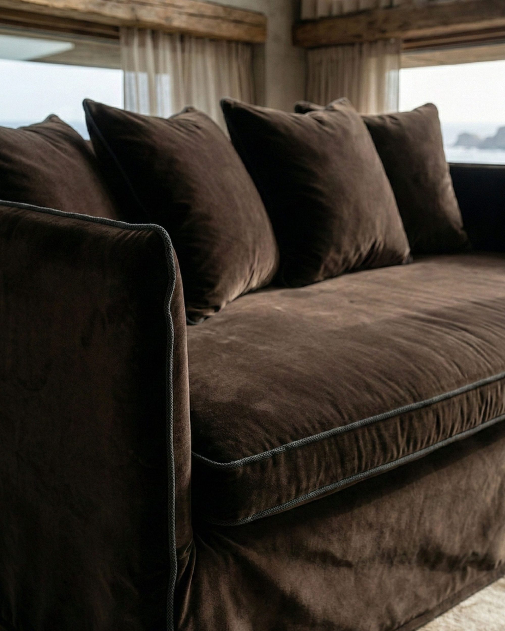 Accueil / ACCESSOIRES DE DECORATION / TABLES BASSES / Canapé Noé 3 en velours Dark Chocolate