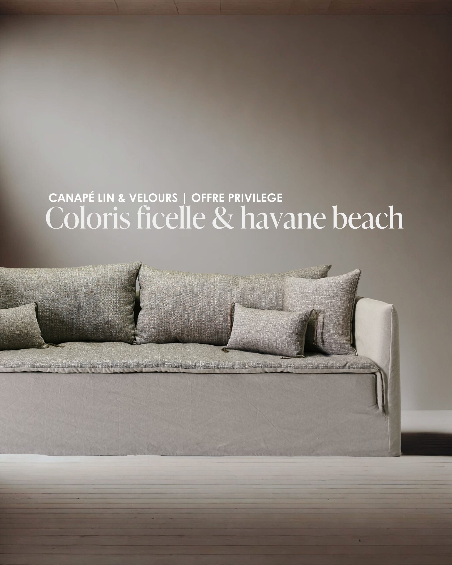 2 grands coussins de dossier recto lin lavé Capri ficelle vers lin Glam havane beach finition bord à bord