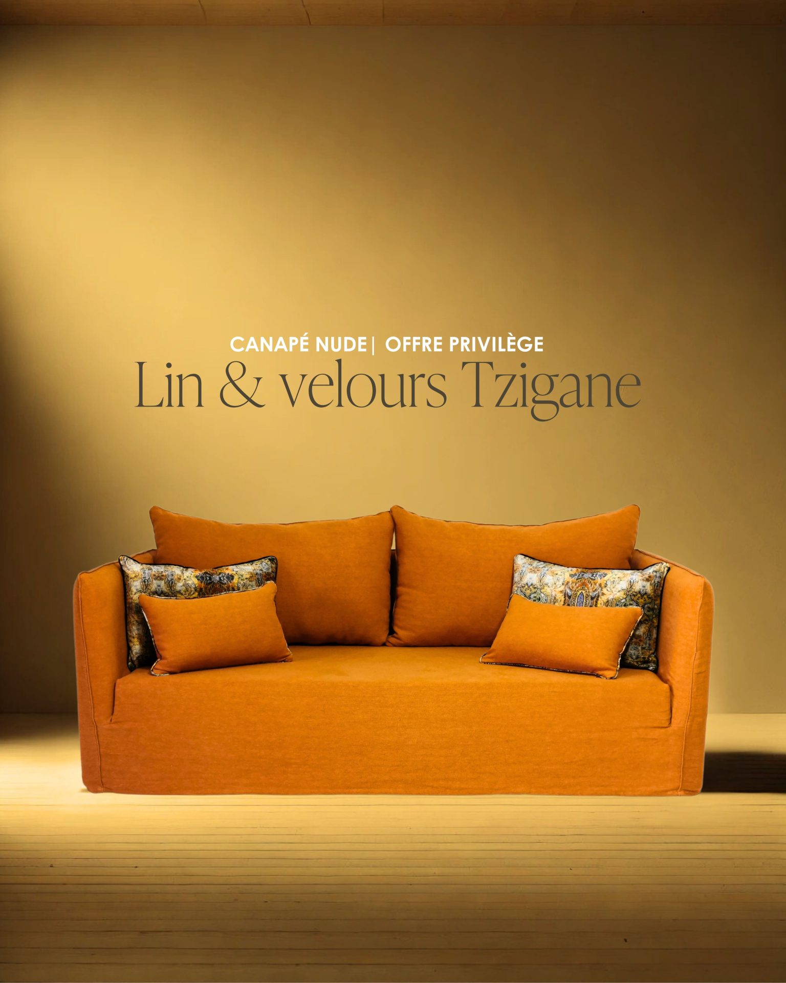 Canapé Nude 200 cm lin lavé Capri orange brûlé