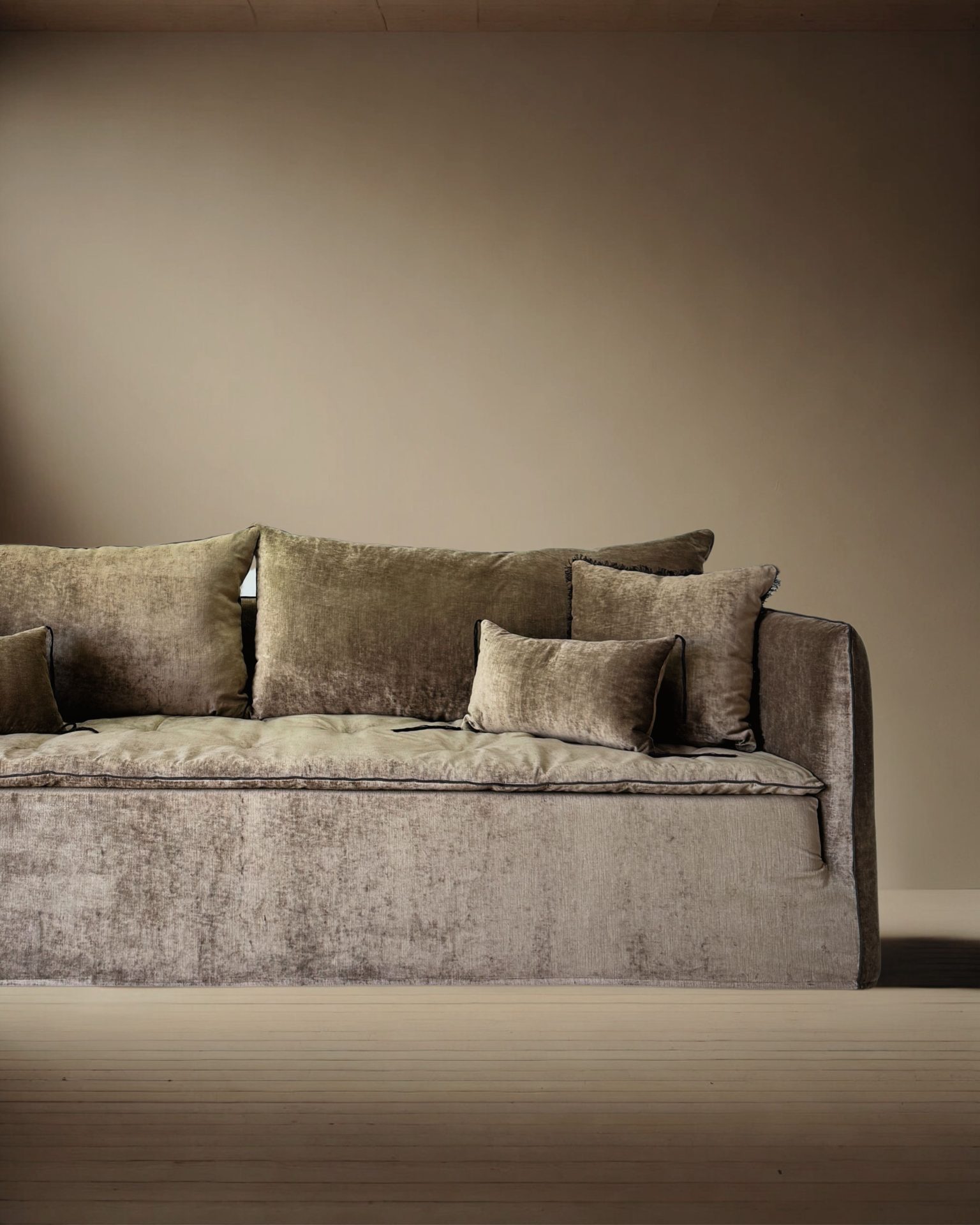 Le canapé Nude célèbre un luxe discret et sensoriel, sublimé par la lumière profonde du velours Tsar et un confort d’assise inimitable.