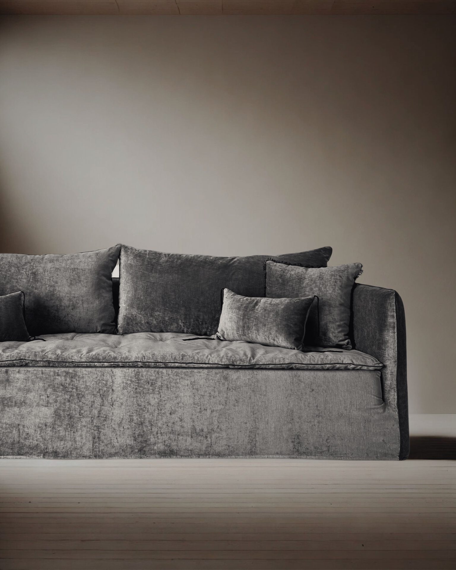 Le canapé Nude célèbre un luxe discret et sensoriel, sublimé par la lumière profonde du velours Tsar et un confort d’assise inimitable.