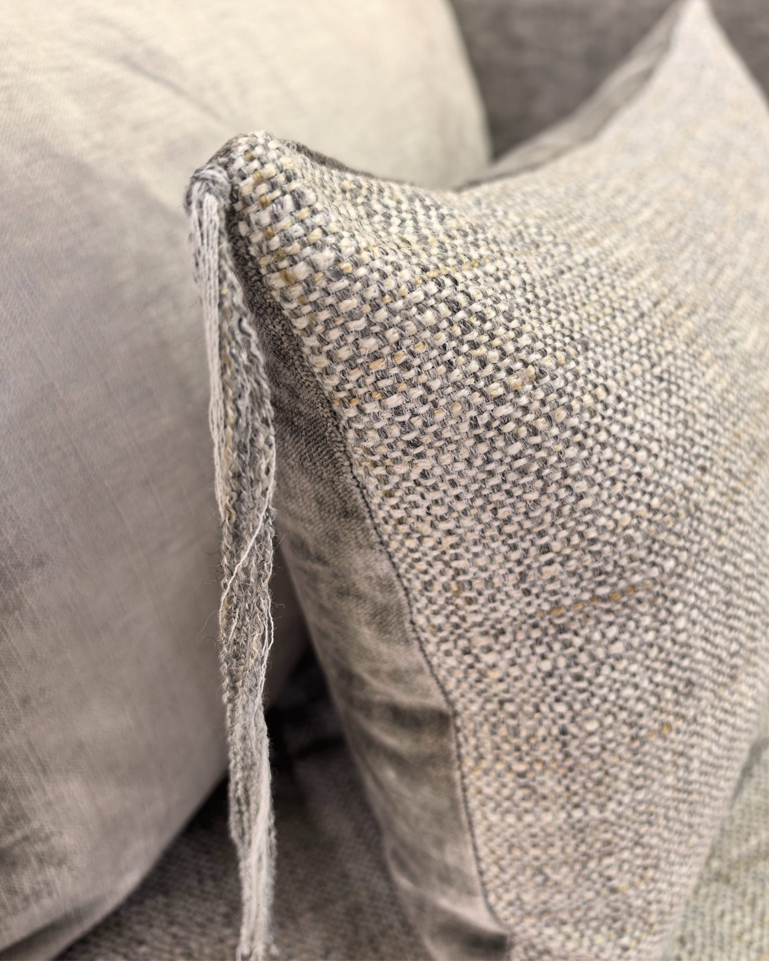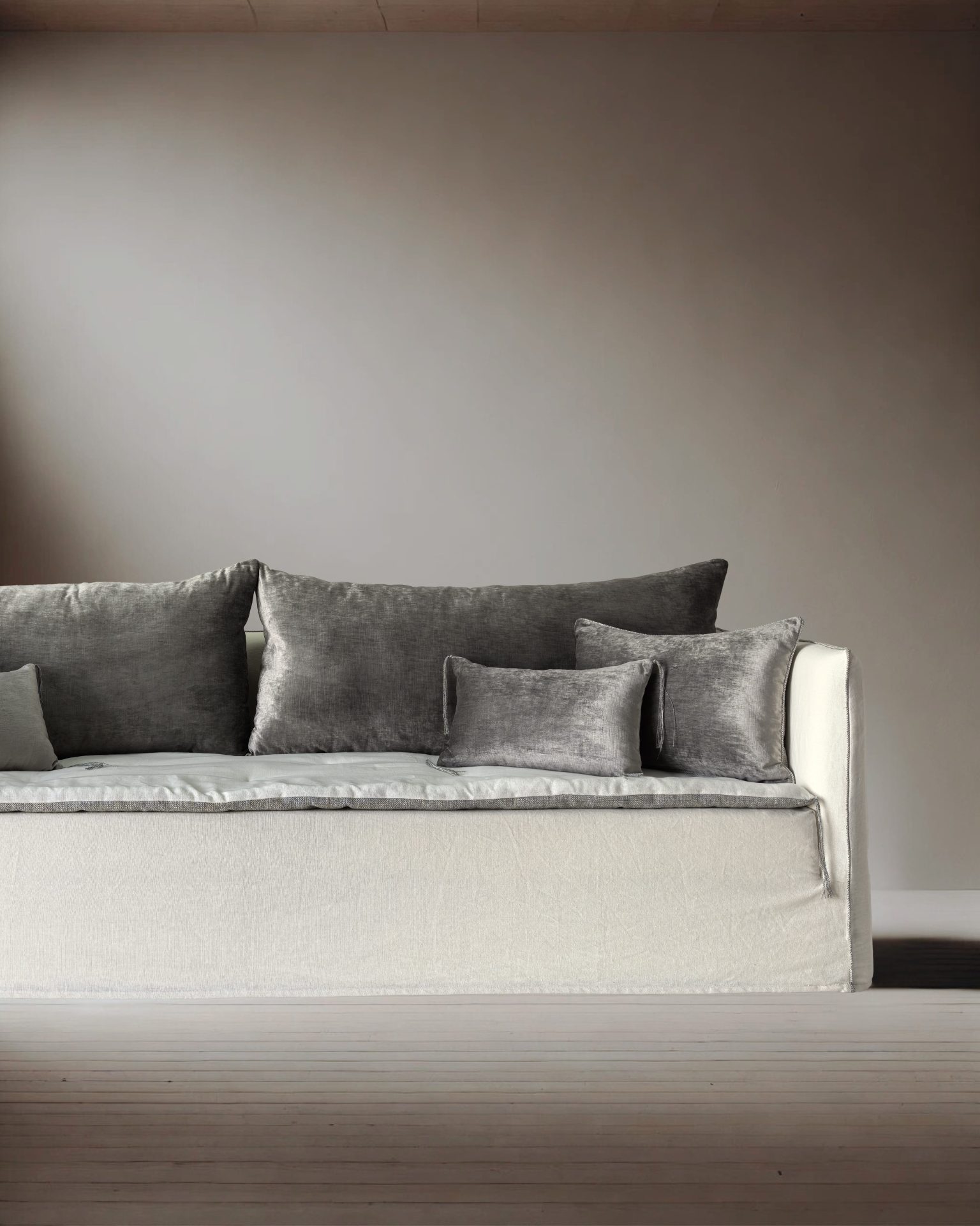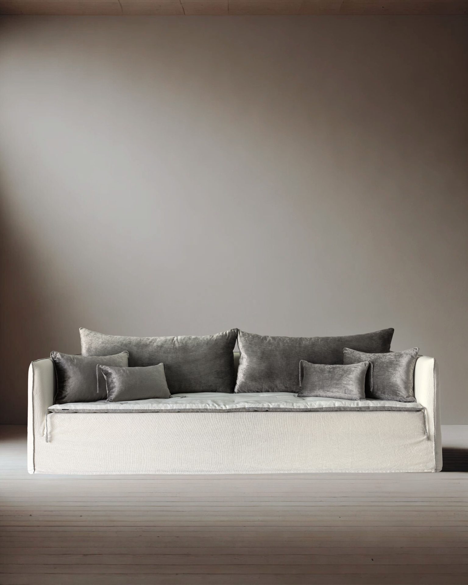 Un grain textile et un tombé couture pour deux saisons et un même canapé.