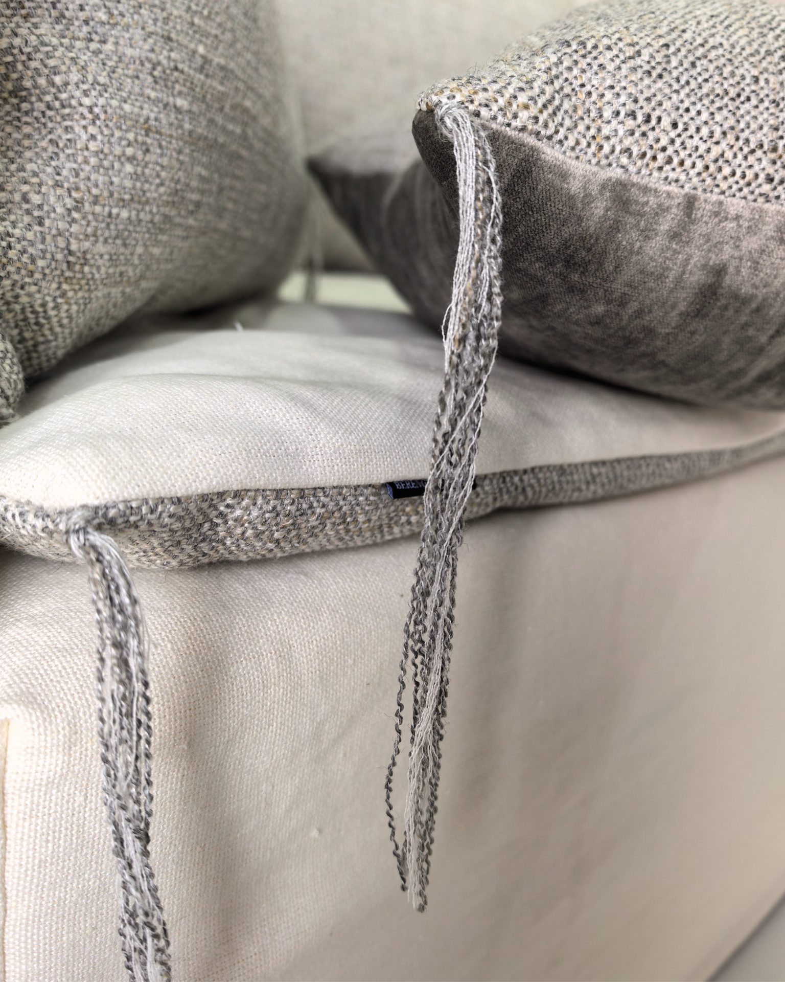 Pensé comme une pièce de vie évolutive, le canapé Nude s’adapte aux saisons et incarne l’art du détail et la poésie du geste avec ses fils noués mains et ses liserés en harmonie chromatique.