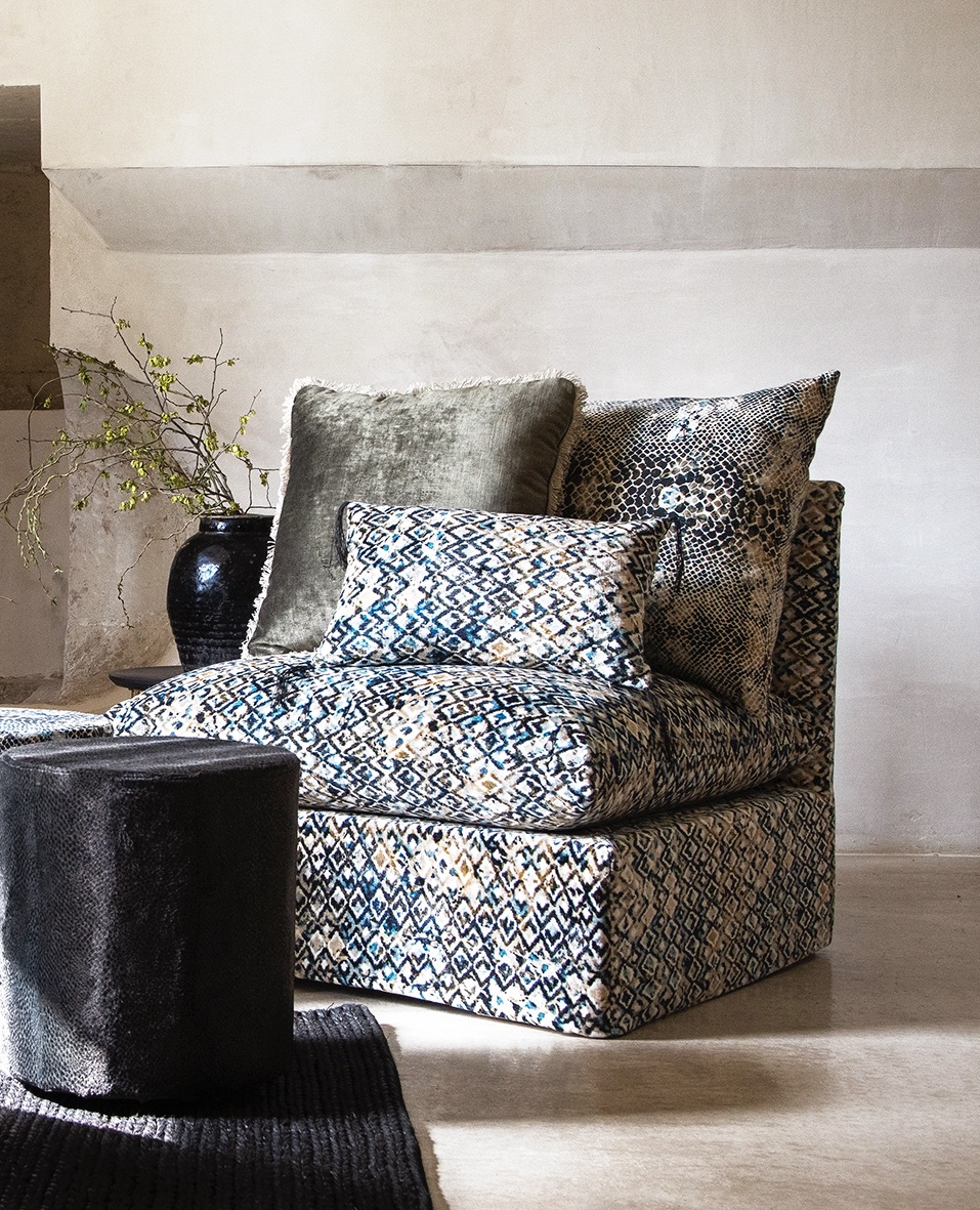 Coussin 50 x 50 cm velours Tsar kaki finition apache nature