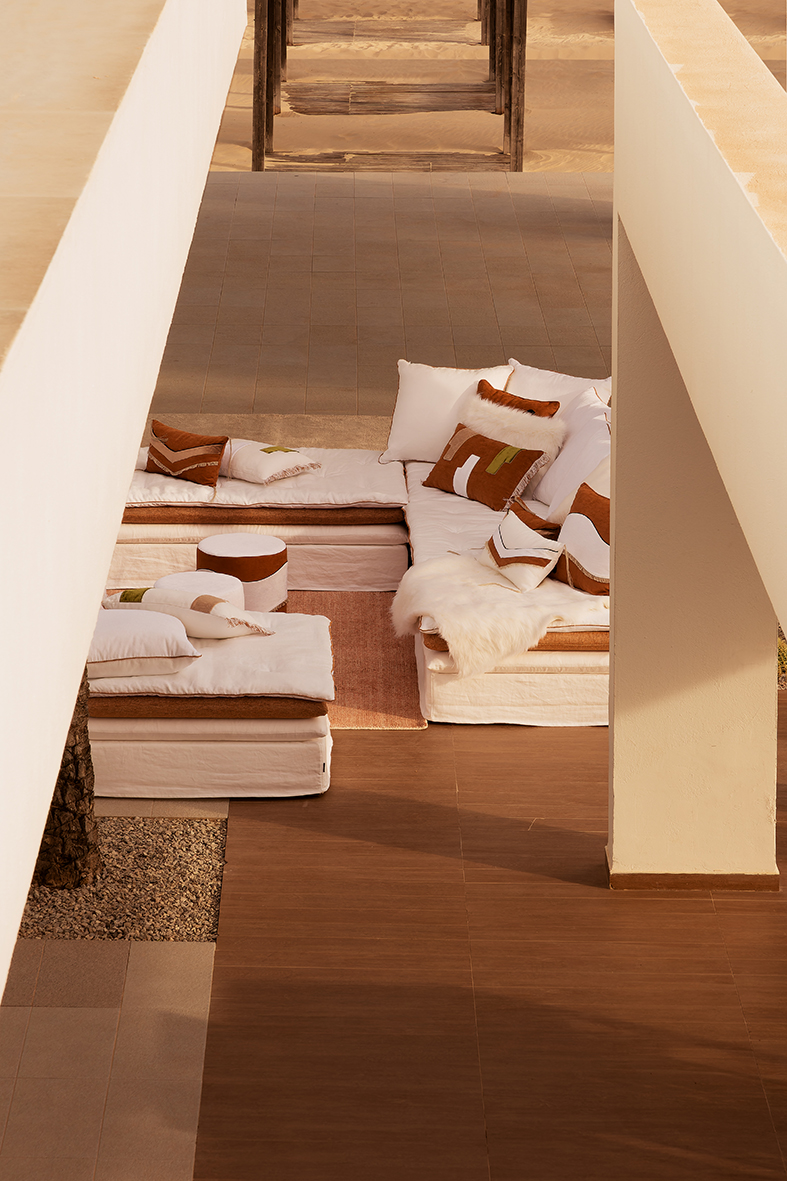 Composition Verone chenille soft washed terre de sienne et lin lavé Capri