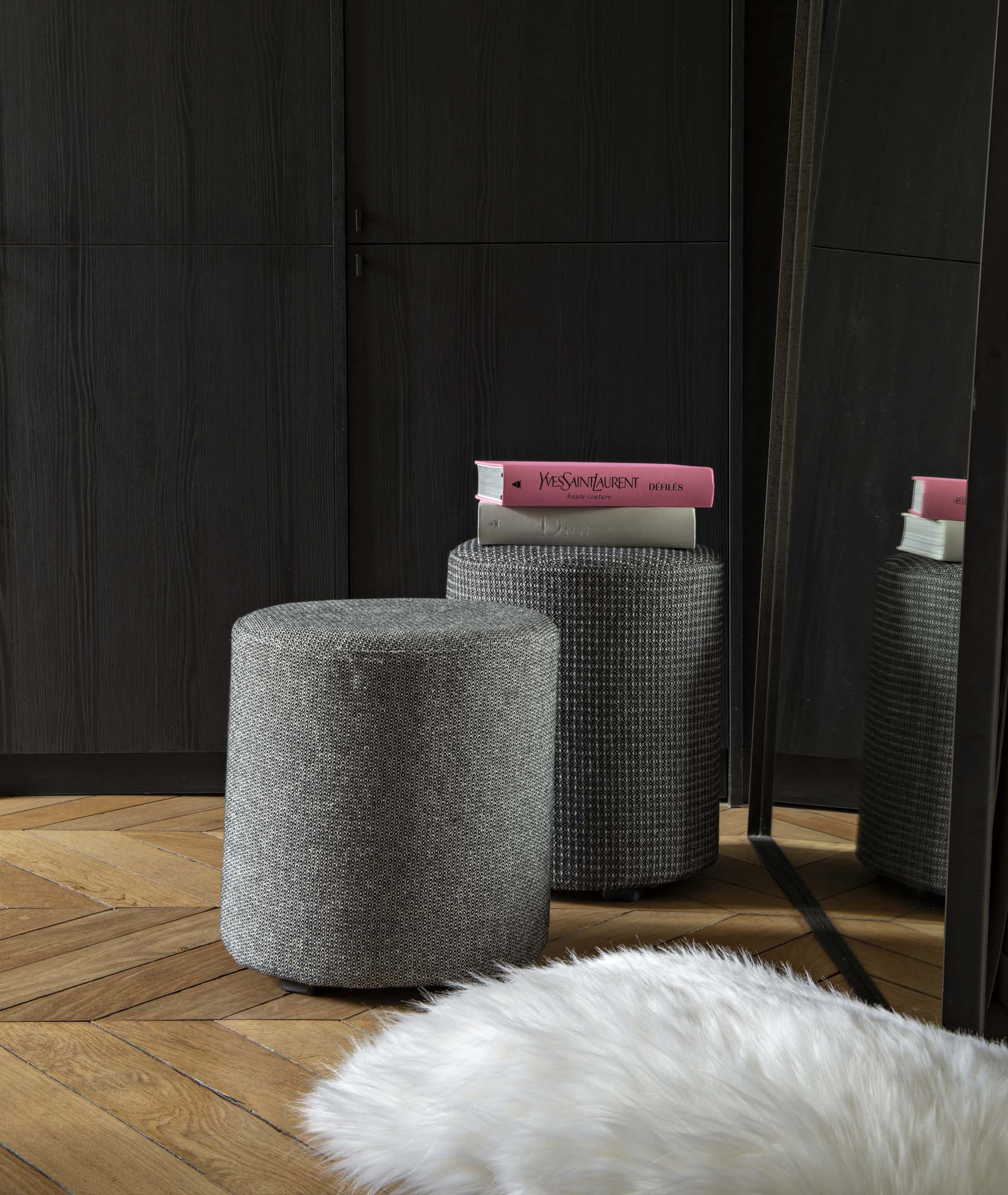 Pouf Trio Paris Saint Rémy tissu Vendôme Shades Of Grey diamètre 40 cm x hauteur 42 cm