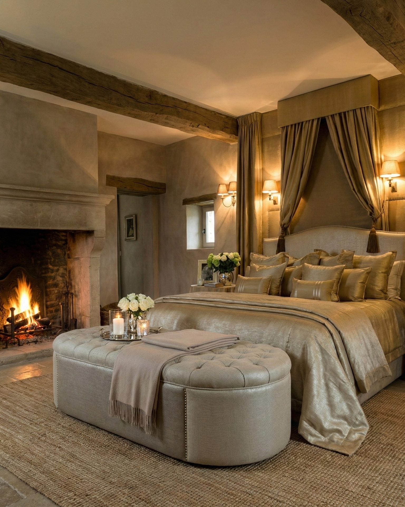 À la fois pièce d’apparat et invitation au confort, il devient un élément central du rituel de la chambre : pour déposer un vêtement, un livre, ou simplement s’y asseoir.