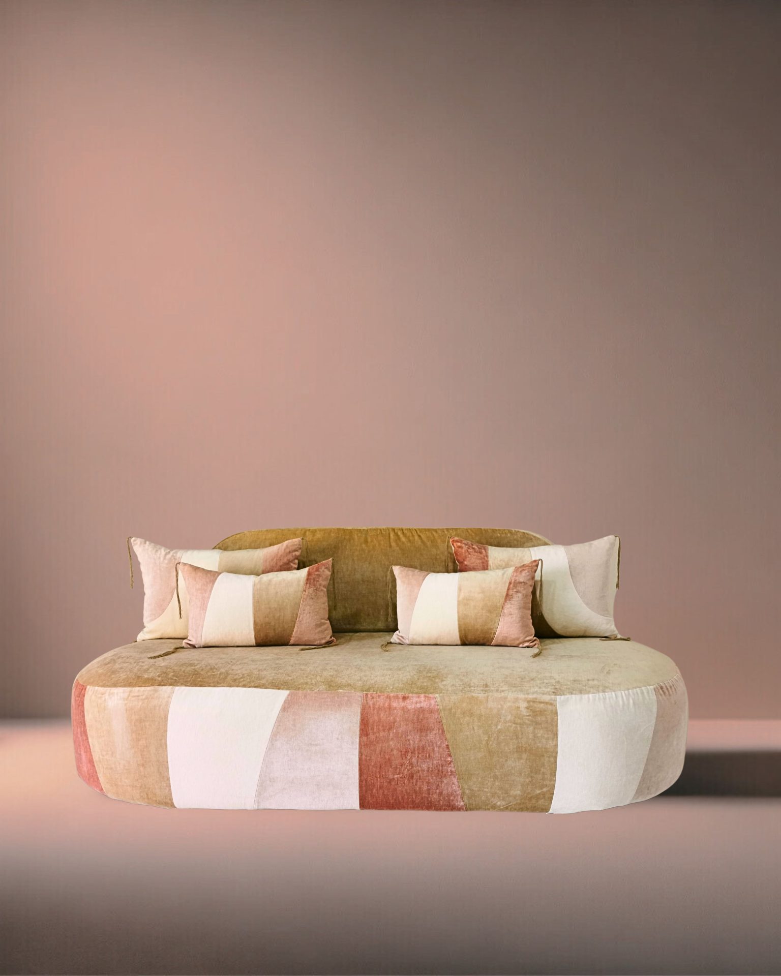 Structure finition "couture" Ipanema par empiècements cousus main de velours Tsar ( Craie, Nude, Thé, Havane Beach )