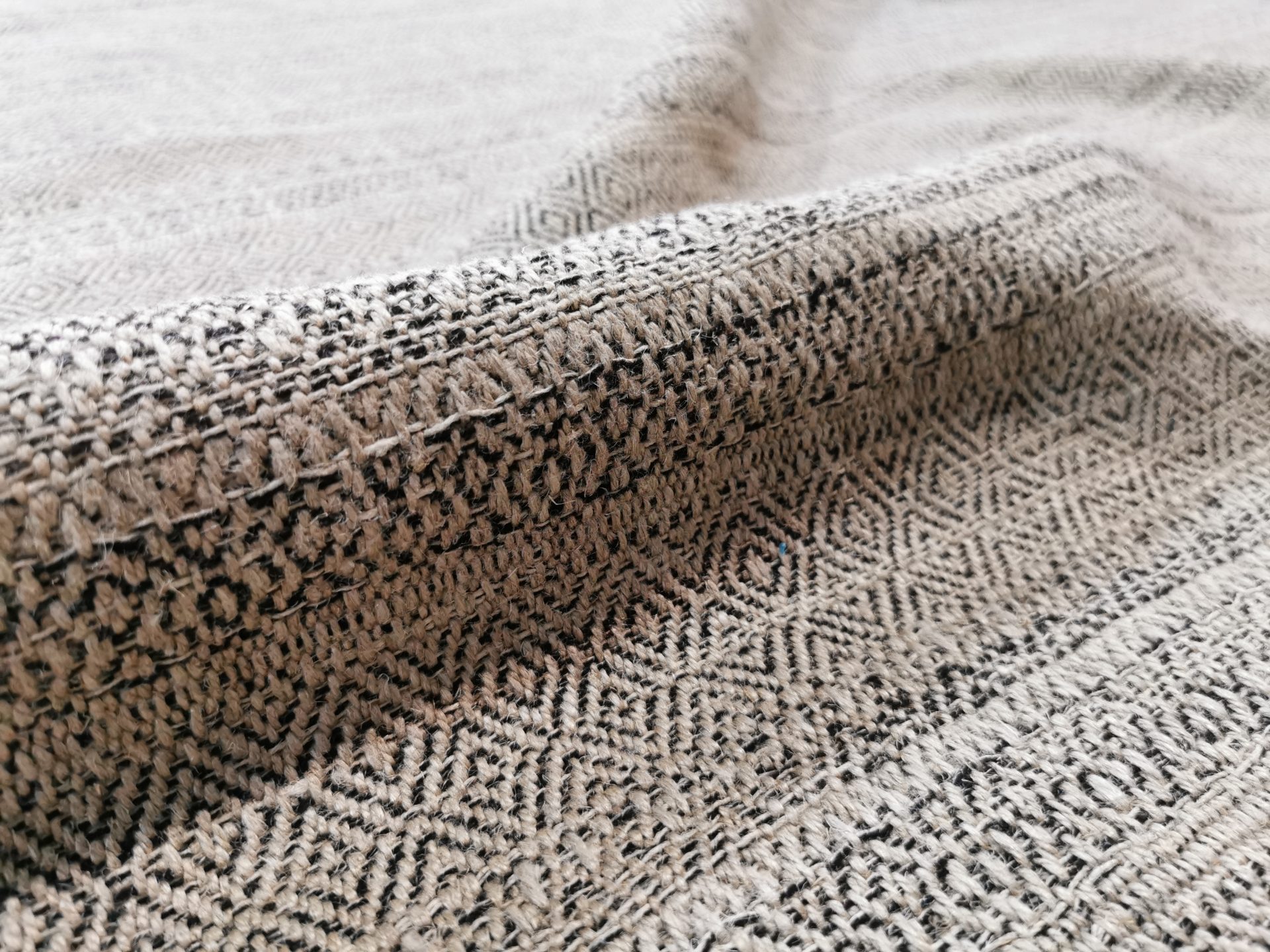 Composition : 64% lin 25% jute 8% acrylique 3% laine