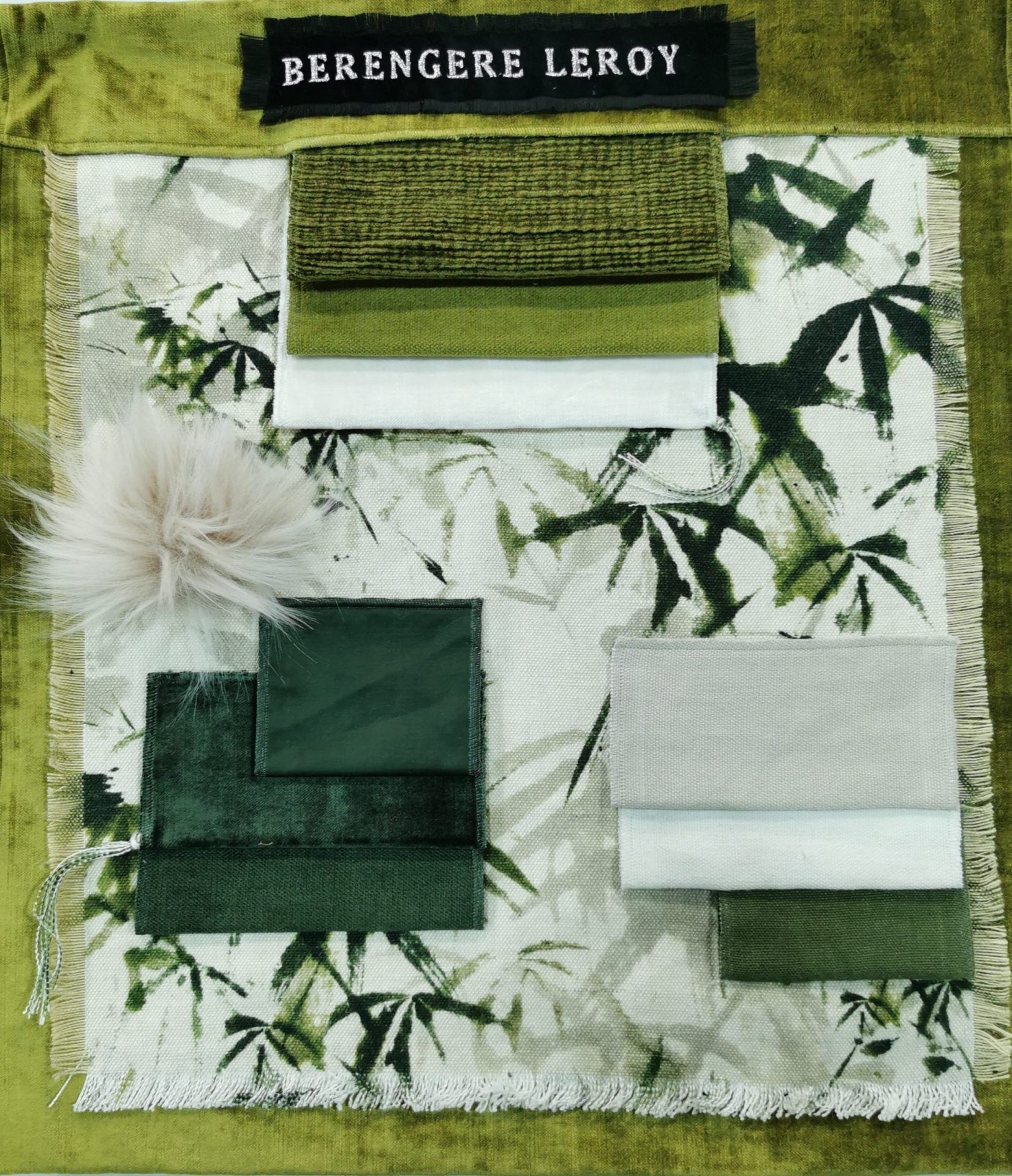 Une fusion de lins imprimés et velours profonds entre greenery, absinthe et émeraude.