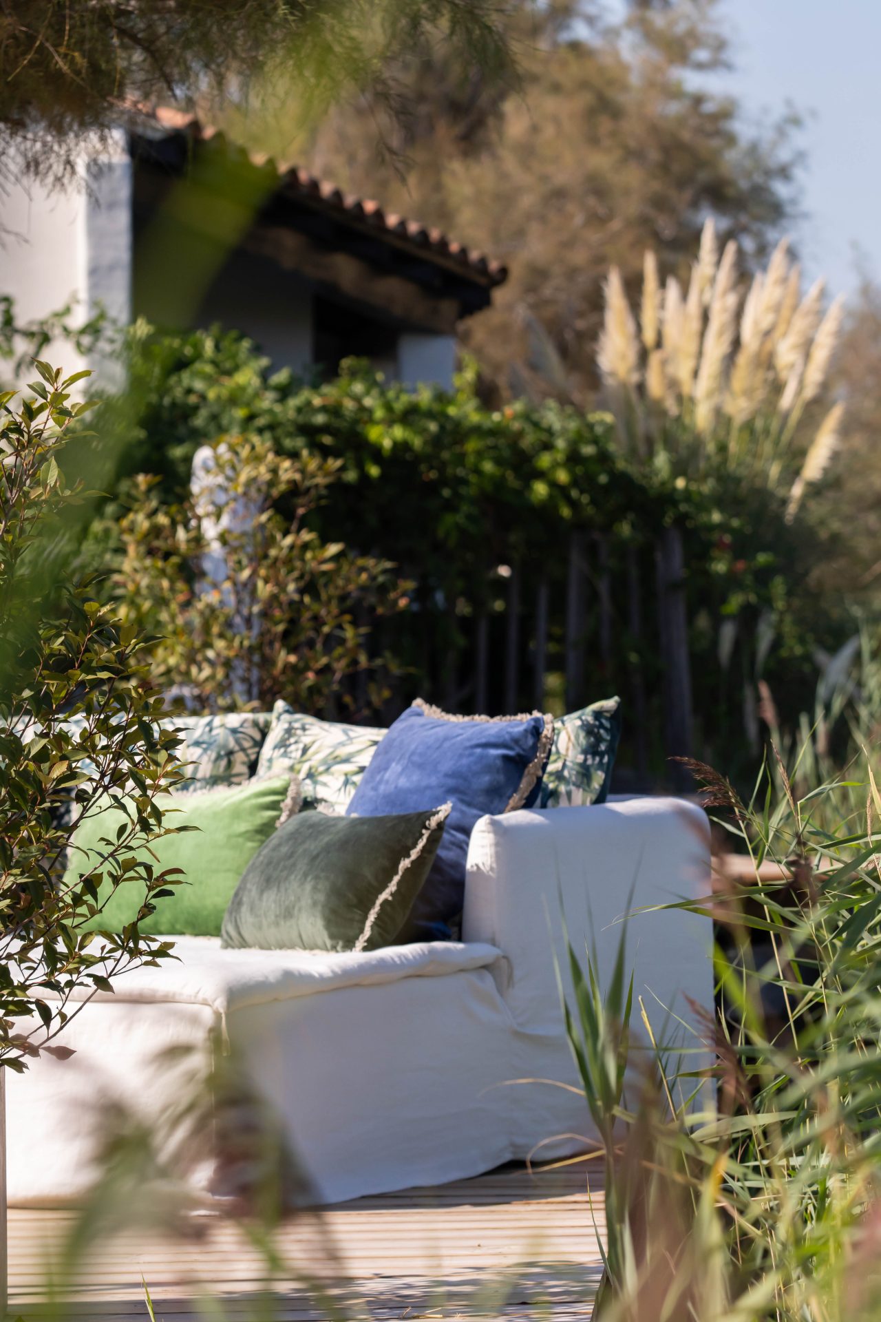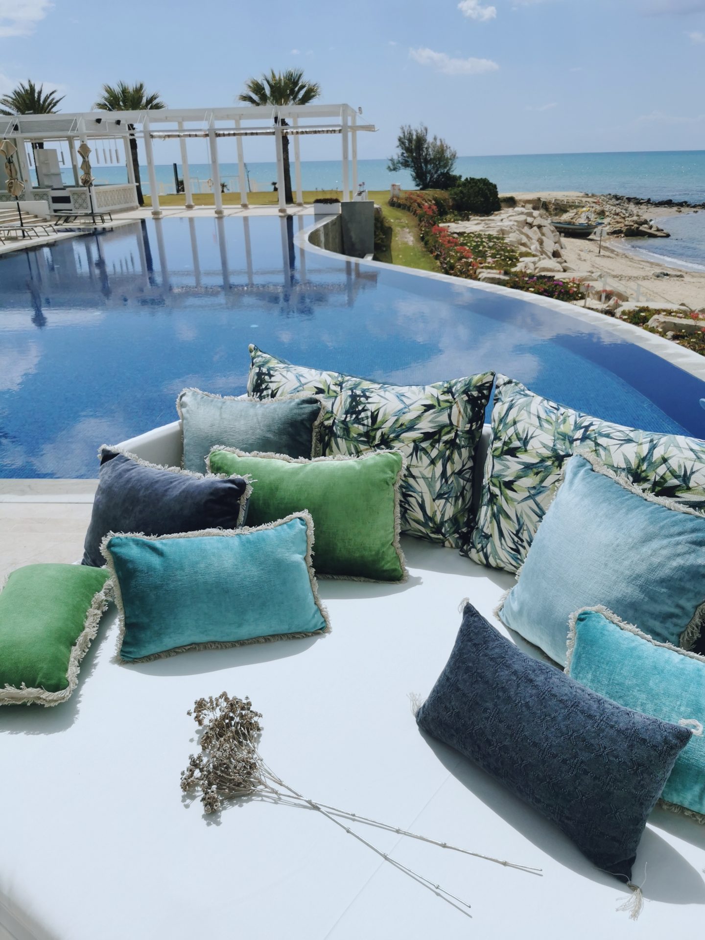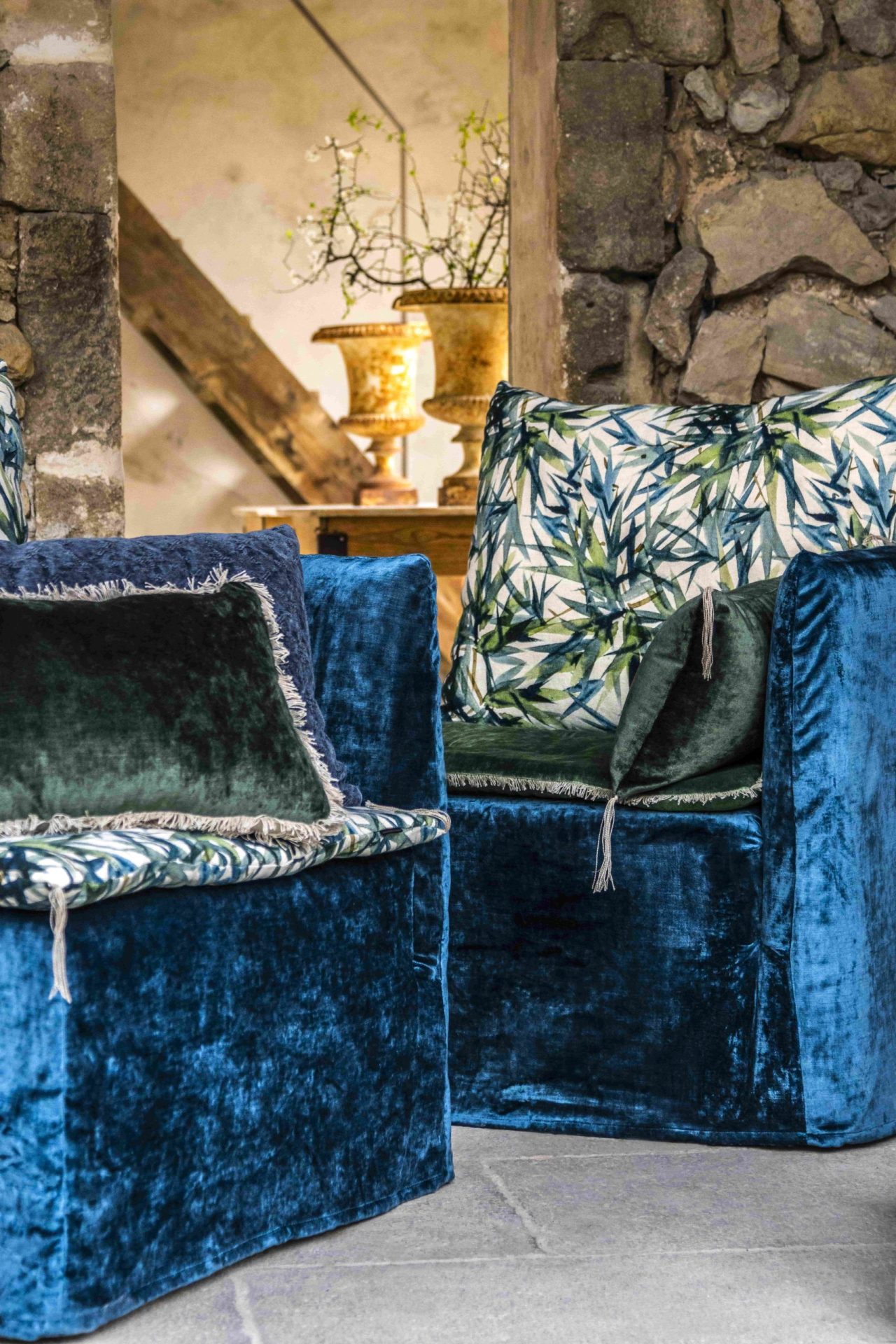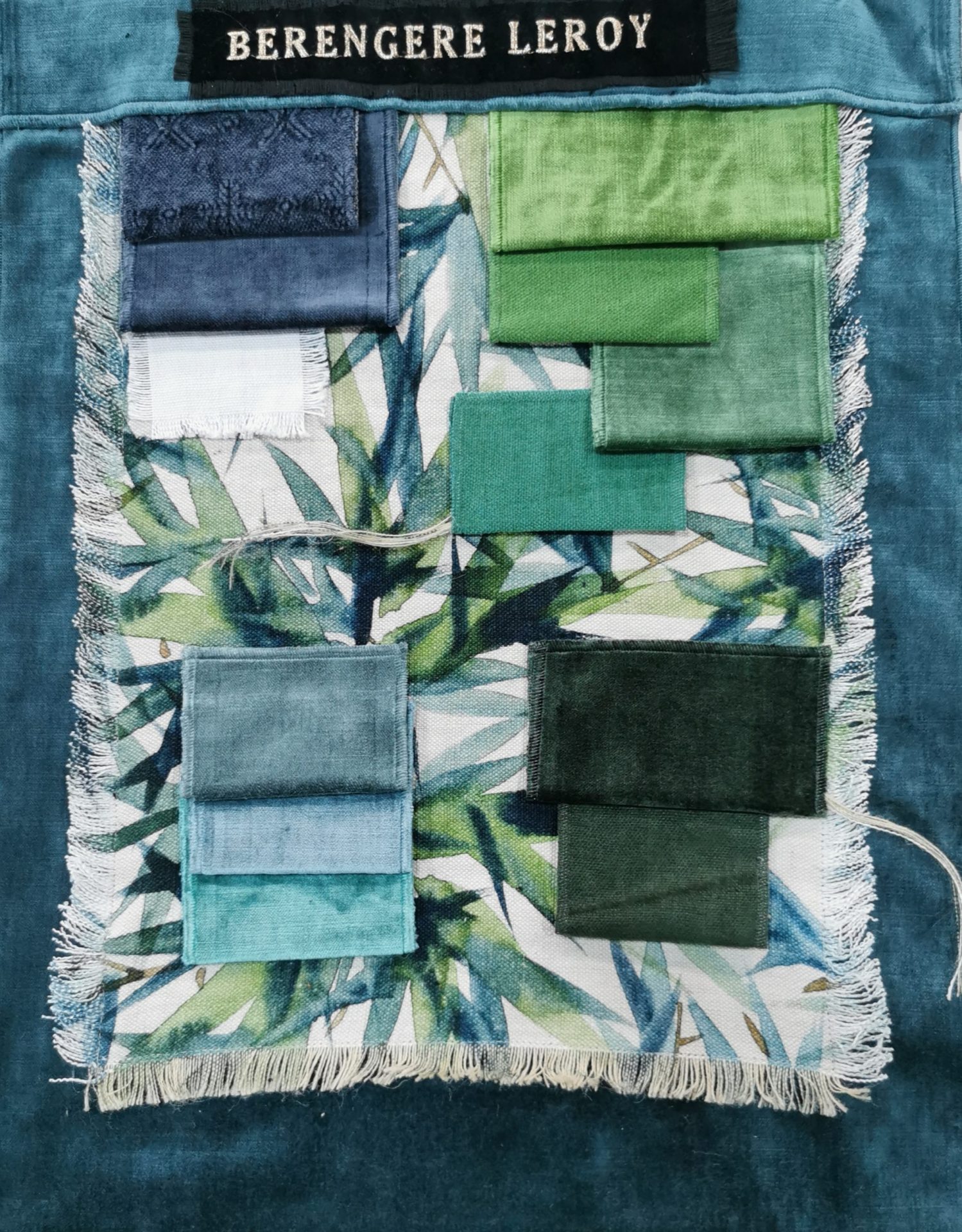 Les velours profonds, les lins lavés et l’imprimé végétal dessinent un paysage textile fluide, aux nuances de verts d’eau et de bleus subtils, dans une harmonie infinie et vibrante.