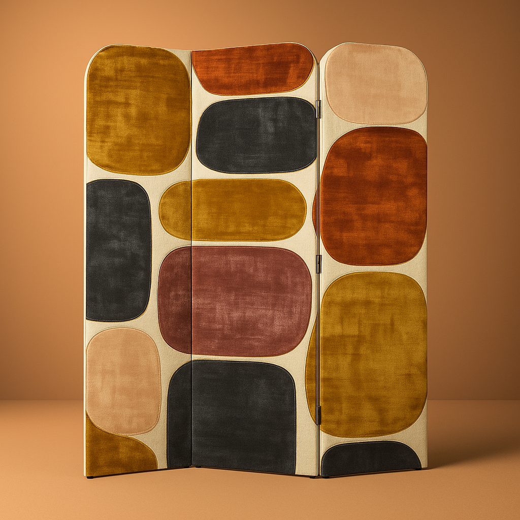 Inspirée du mythique Palais Bulles de Pierre Cardin, le paravent Bulles célèbre la liberté des formes organiques et des couleurs solaires.
