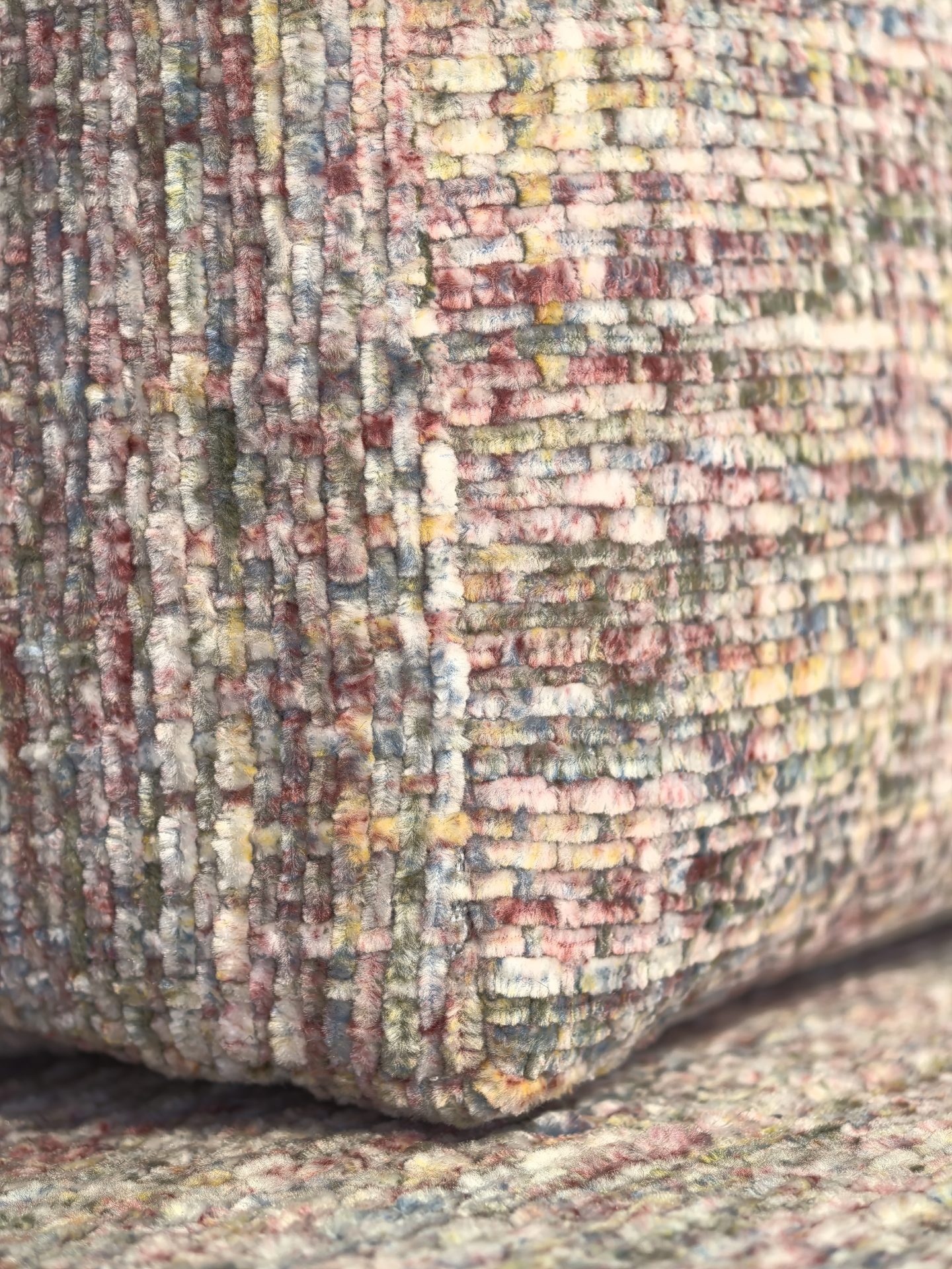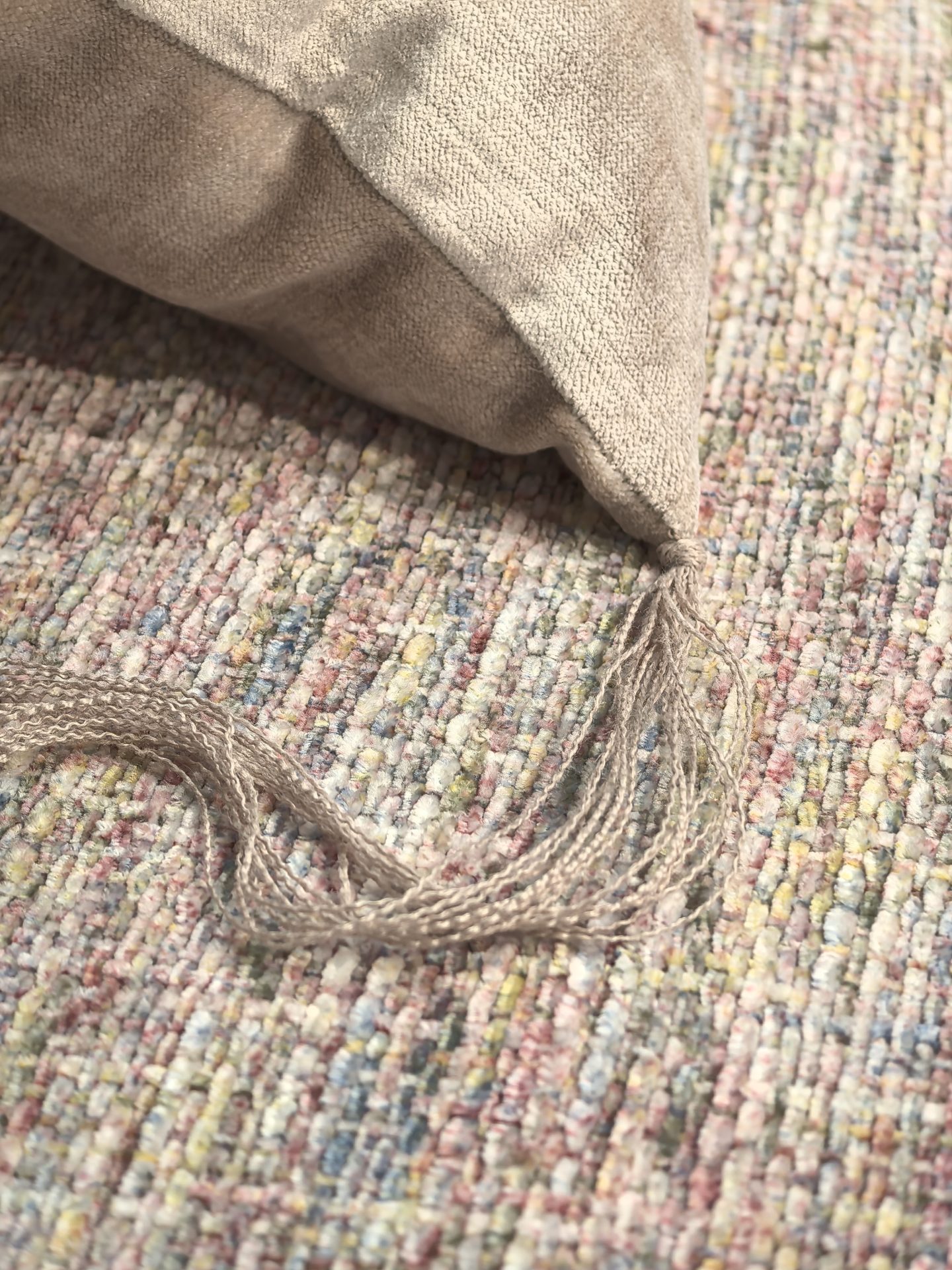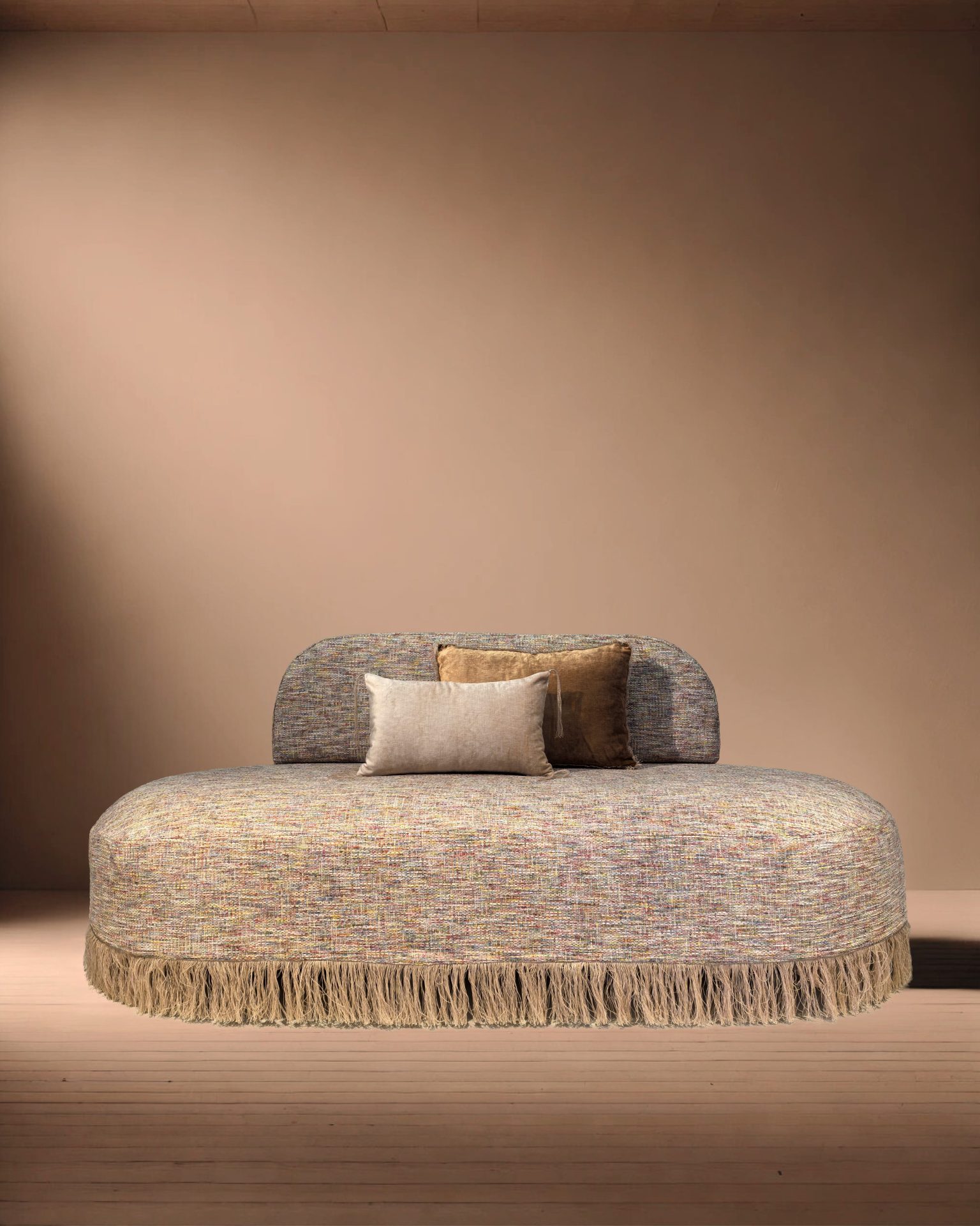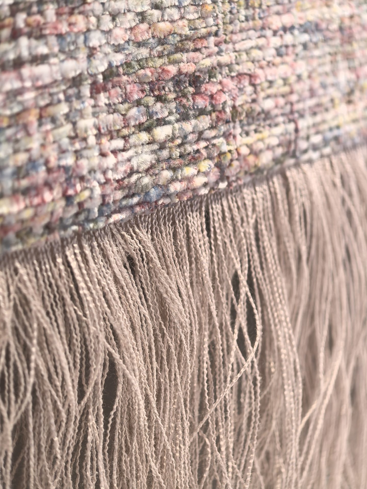 Avec son tissu poétique, chiné comme une étoffe de Haute Couture, le canapé POP COCO est un hommage à l’iconique Tweed de Gabrielle Chanel. Un tissage subtil de fils pastel, de lumière diffuse…comme une aquarelle tissée. Ses franges longues et délicates, en lin rose thé, nouées une à une, ondulent à chaque regard comme une jupe de soirée posée sur un rêve d’enfance.