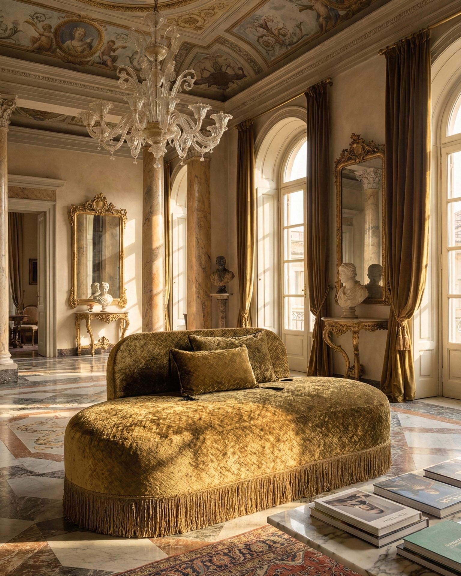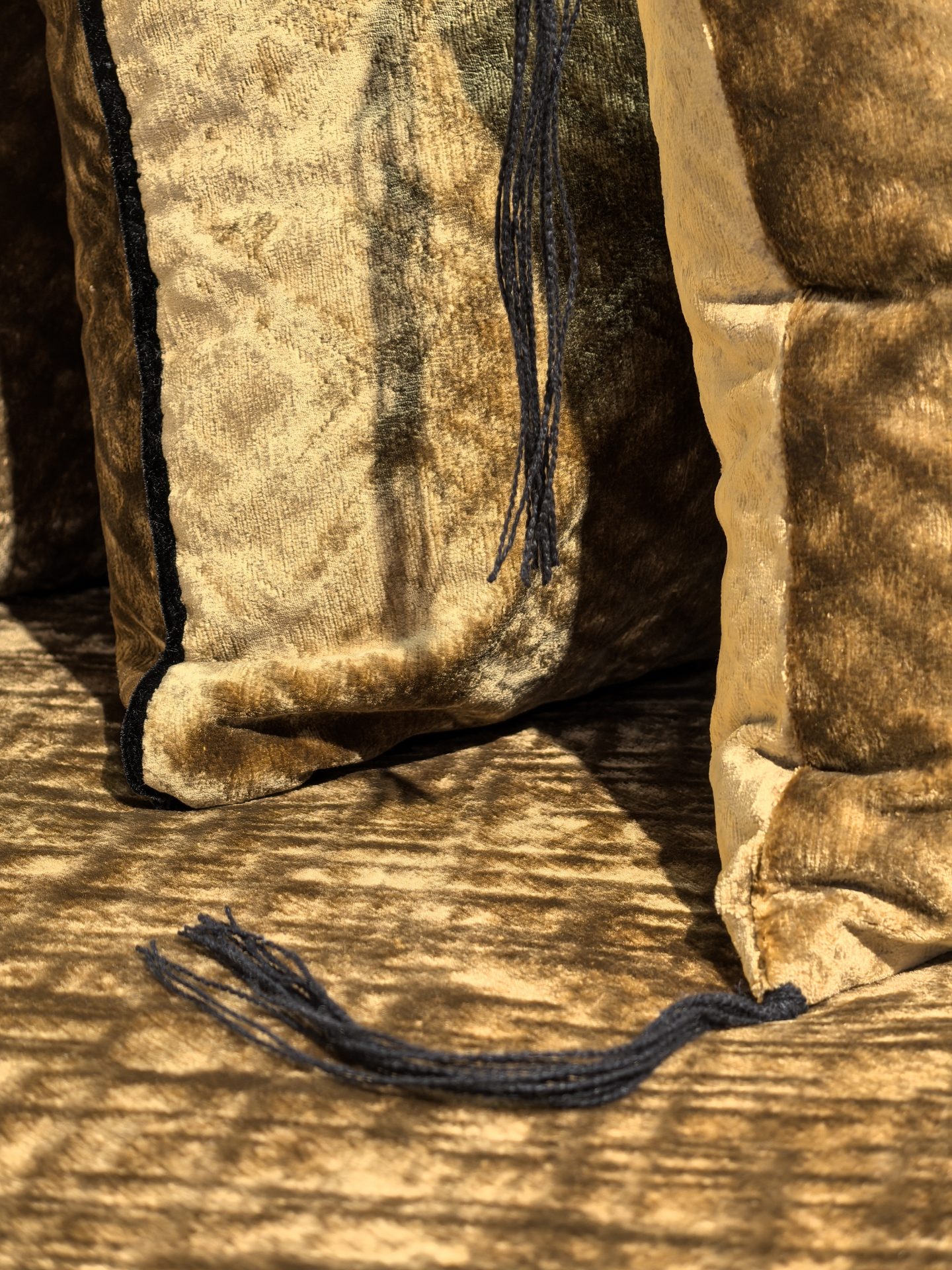 Un velours charnel, presque animal. Une peau textile sculptée, entre opulence et retenue, où résonnent l’écho feutré des salons milanais et les gestes sûrs et silencieux des maîtres artisans.