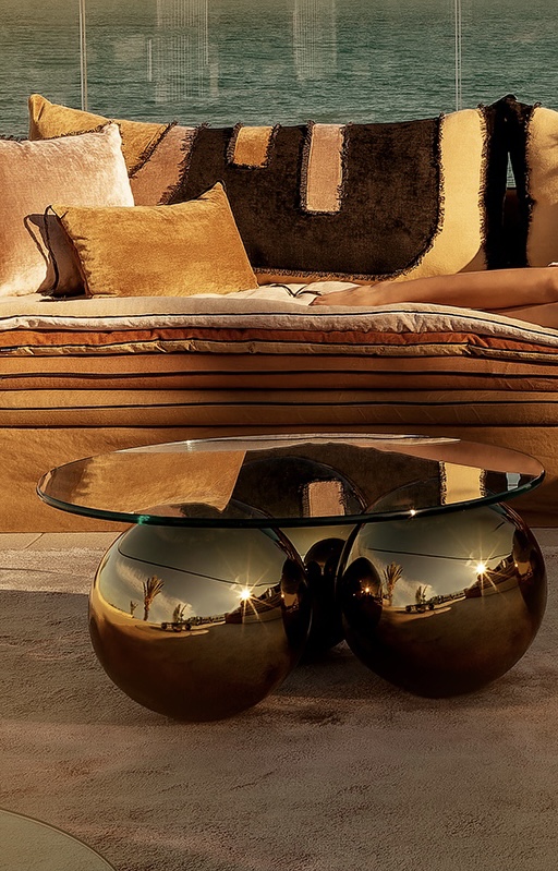 Composée de 3 sphères de verre doré soufflé artisanalement, et d’un plateau de verre, la Table Earth Gold vient compléter et sublimer de façon artistique votre création Bérengère Leroy .