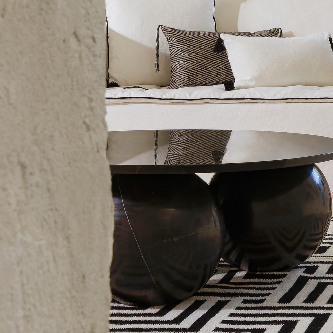 Composée de 3 puissantes sphères de marbre noir poli et d’un plateau rond, la Table Earth en Marbre Noir est une pièce d’art sensuelle et unique qui embellira votre salon par ses proportions parfaites.