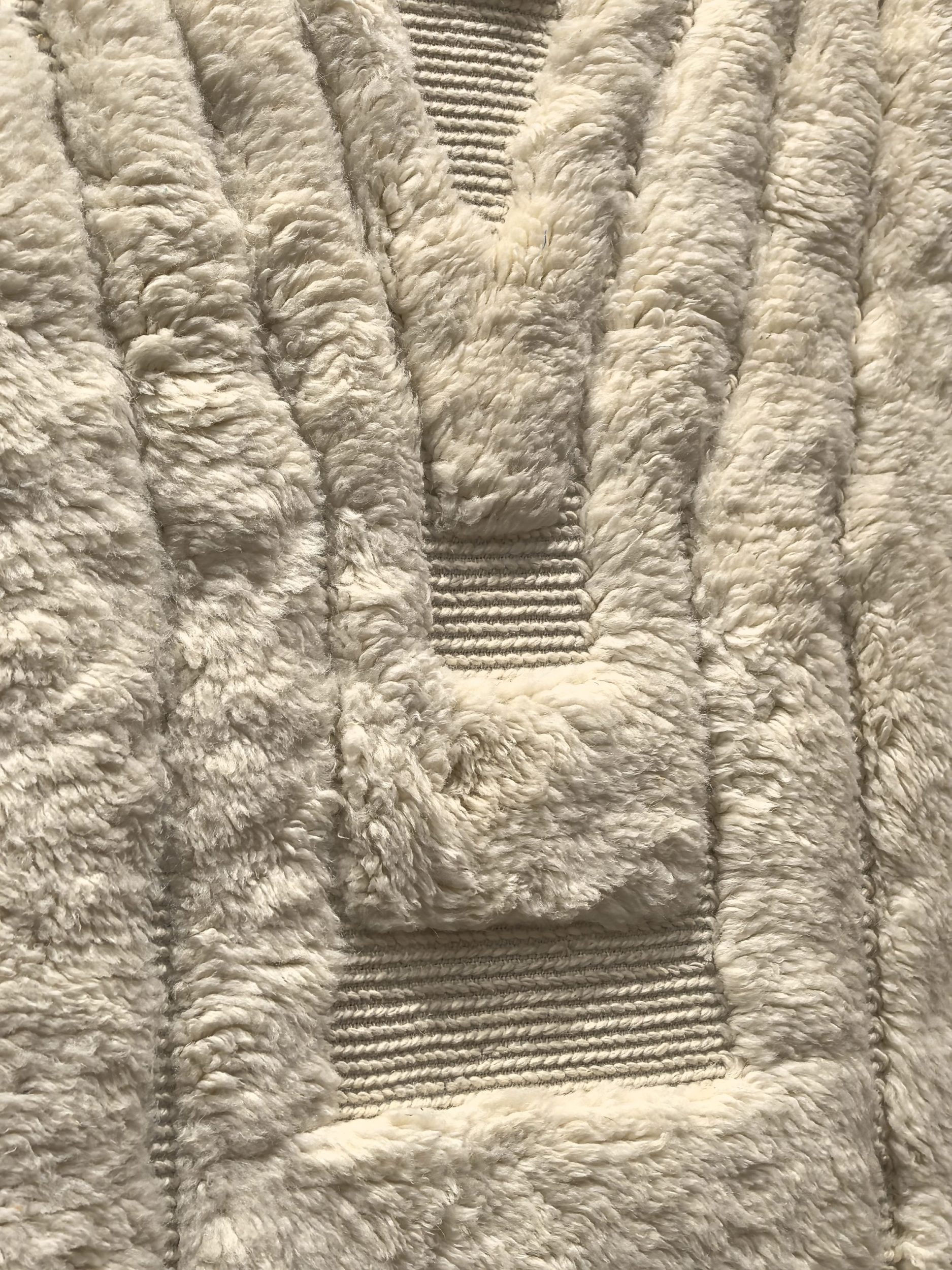 C’est toute la magie du tapis Mrirt : conjuguer une technique immémoriale à une esthétique contemporaine, rien n’y est parfaitement droit, et c’est précisément dans cette imperfection maîtrisée que réside sa beauté.