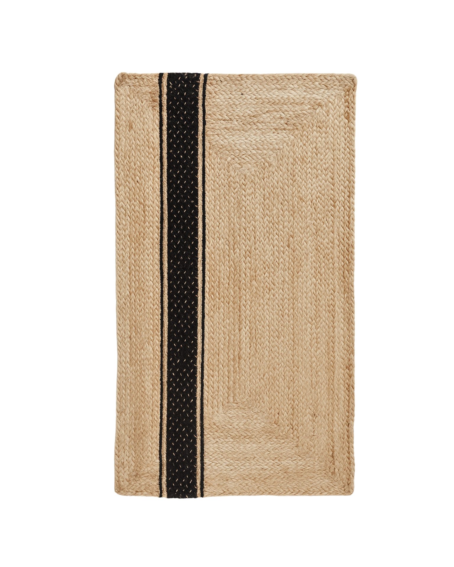 Trait Noir trace une ligne profonde sur le chanvre naturel, comme un geste d’encre sur la matière brute, la lumière révèle les nuances dorées du tressage et la force graphique du noir.
