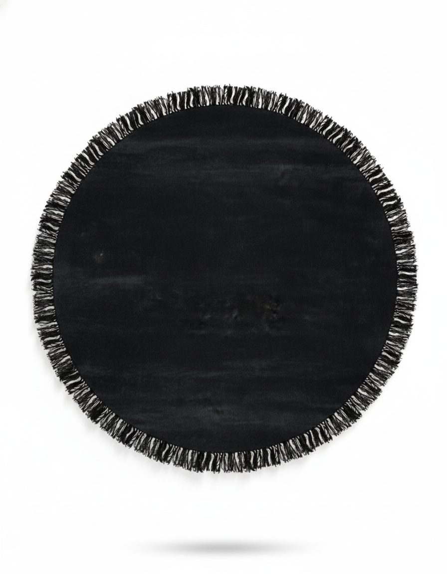 Accueil / Les Collections / Tribal / Tapis Tsar noir rond franges lin noir