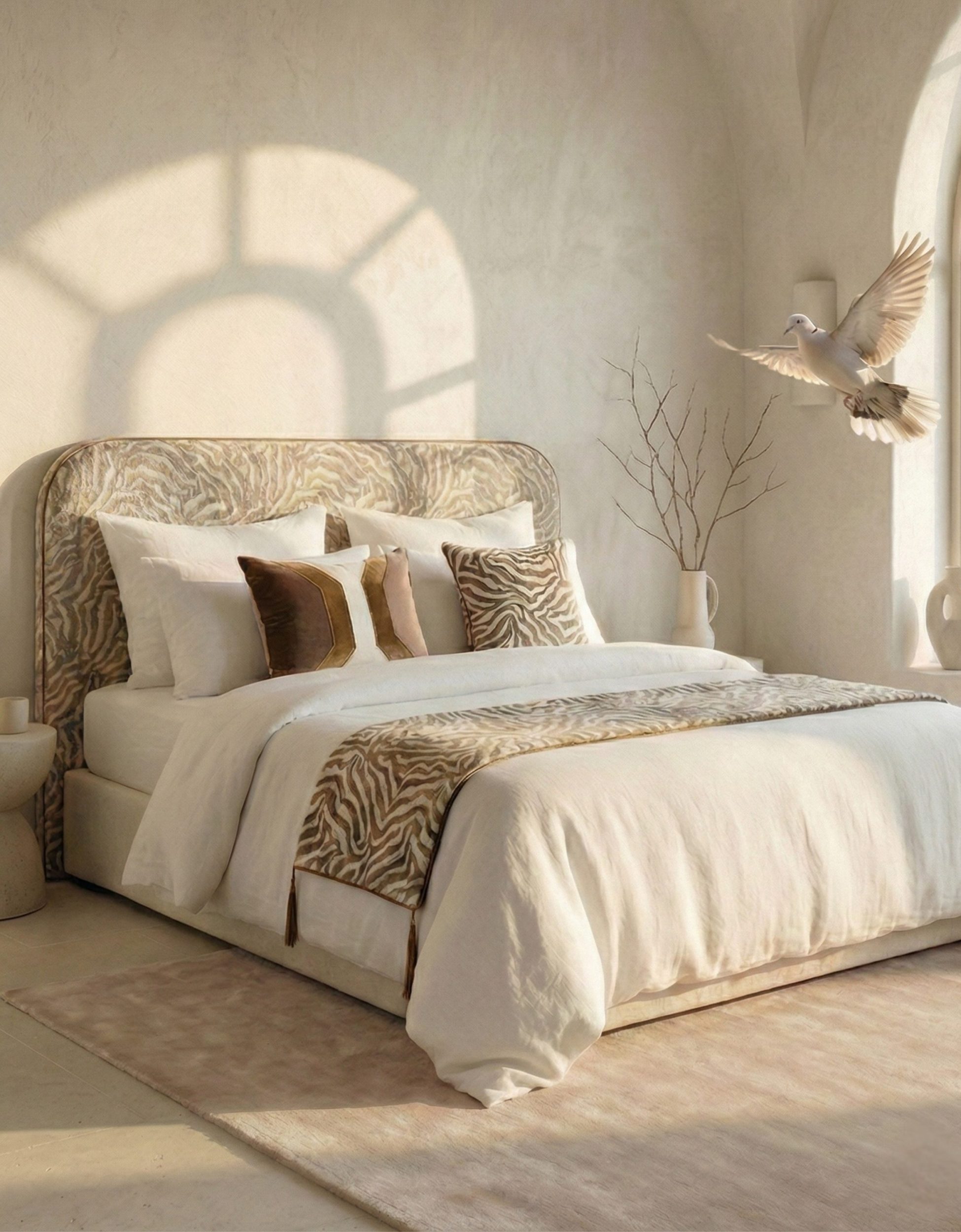 La tête de lit Bird incarne la douceur d’un plumage capturé dans la lumière.