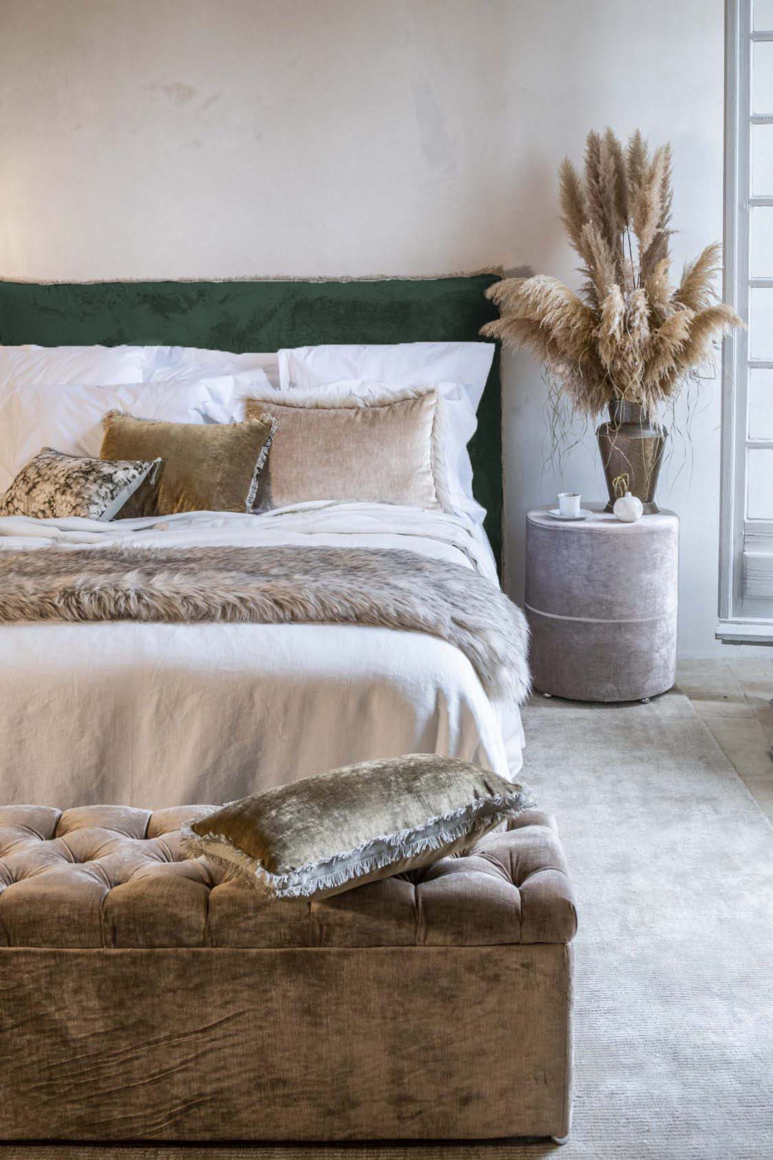 La tête de lit Mila est fabriquée à la demande dans n’importe lequel de nos tissus velours Tsar.