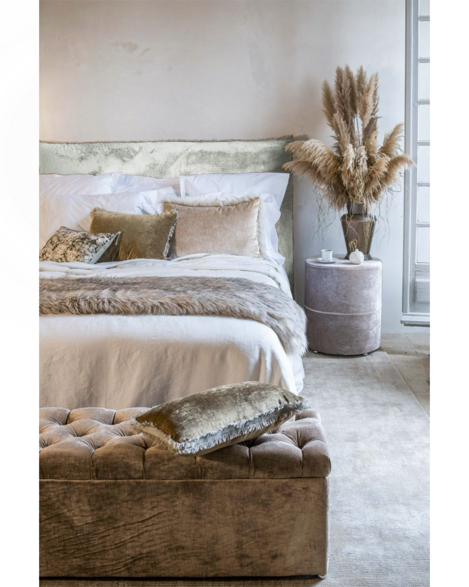 La tête de lit Mila est fabriquée à la demande dans n’importe lequel de nos tissus velours Tsar.